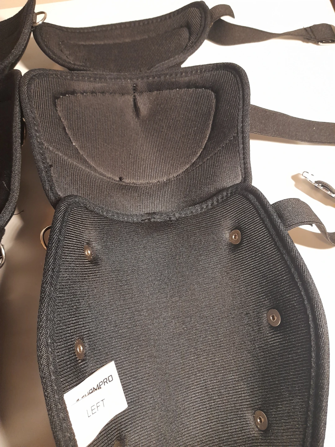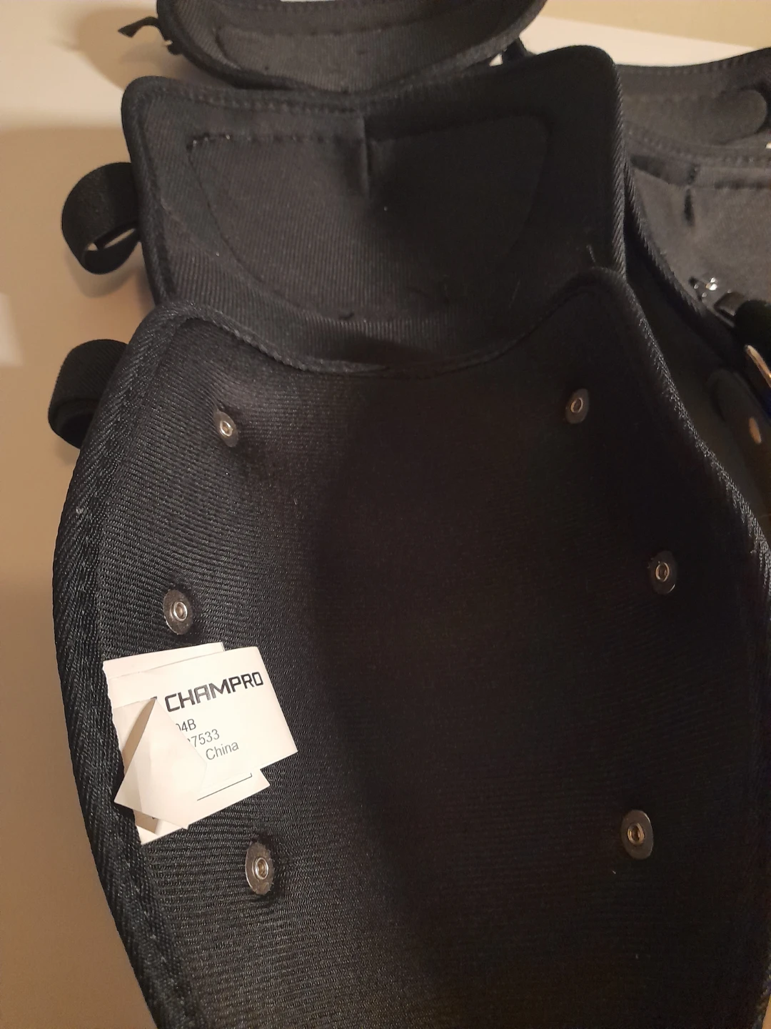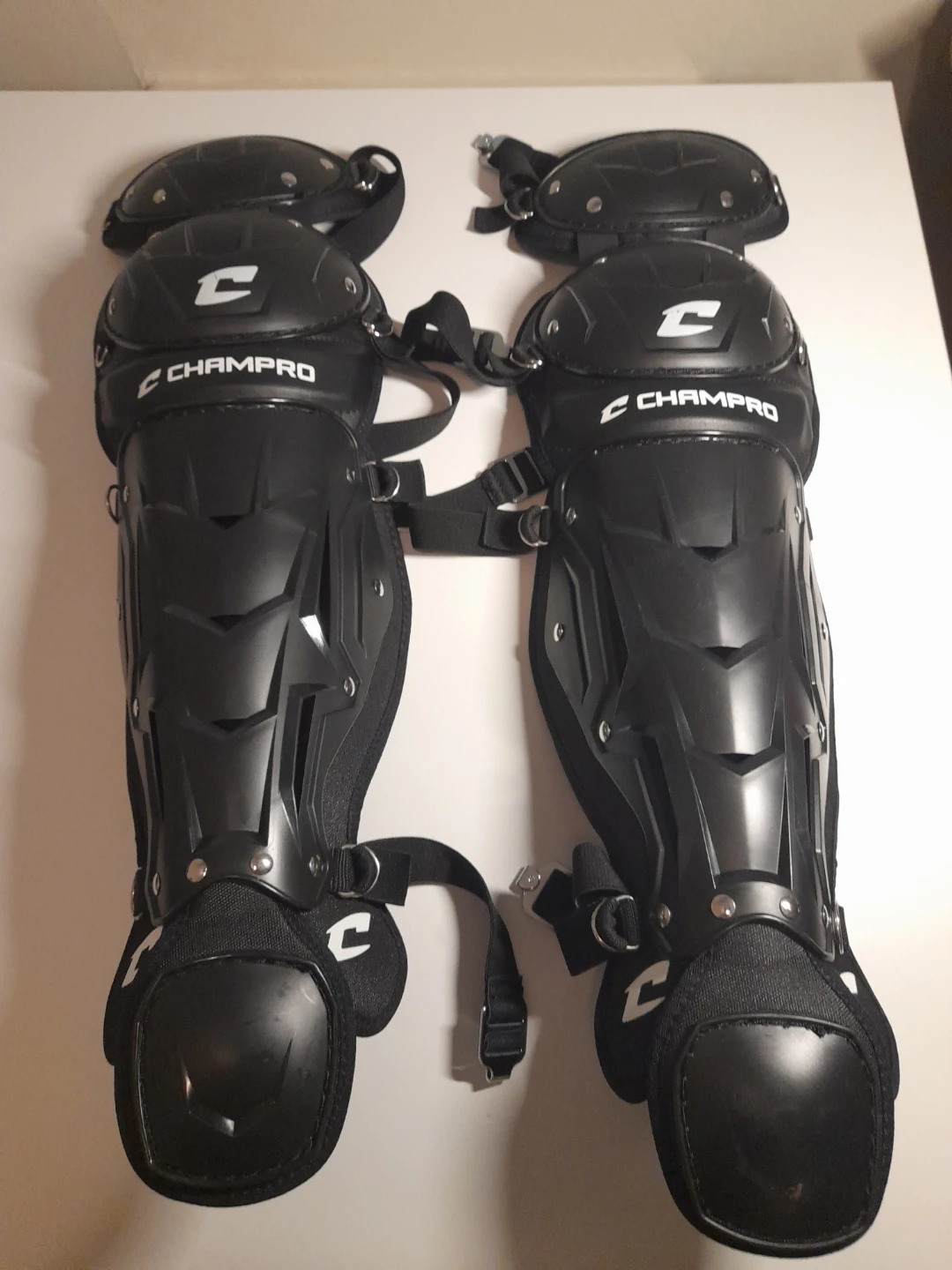 These black shin guards are from Champro. They are adjustable and have a padded interior for comfort and protection. Comes as a pair. 14.5" Length.