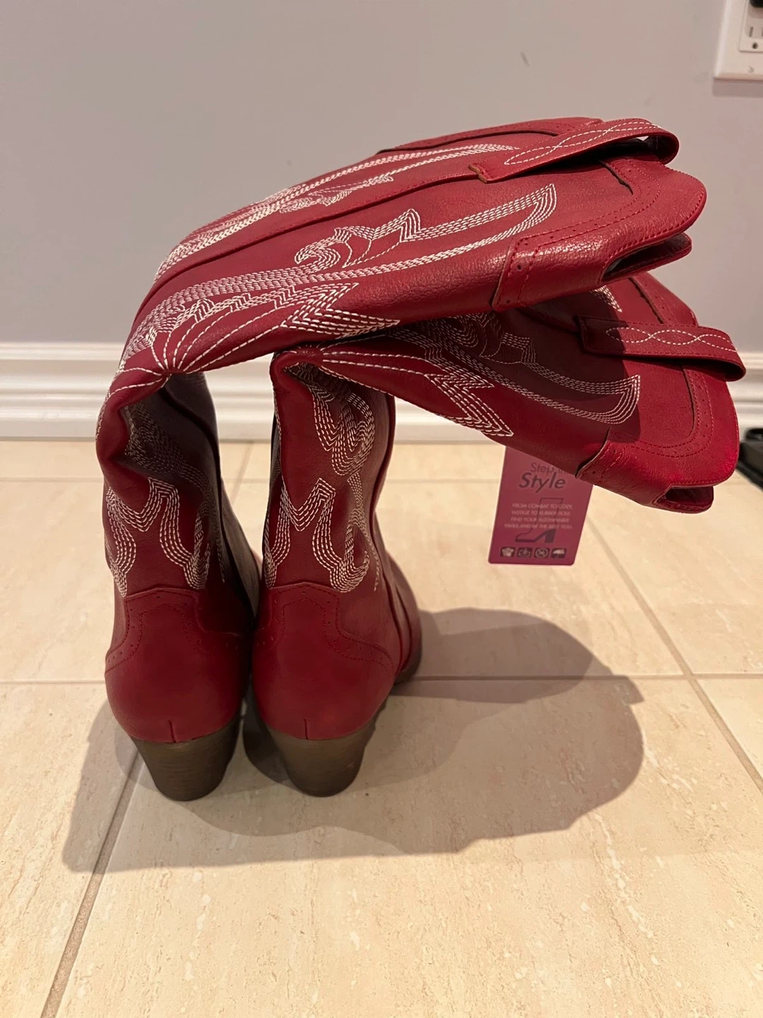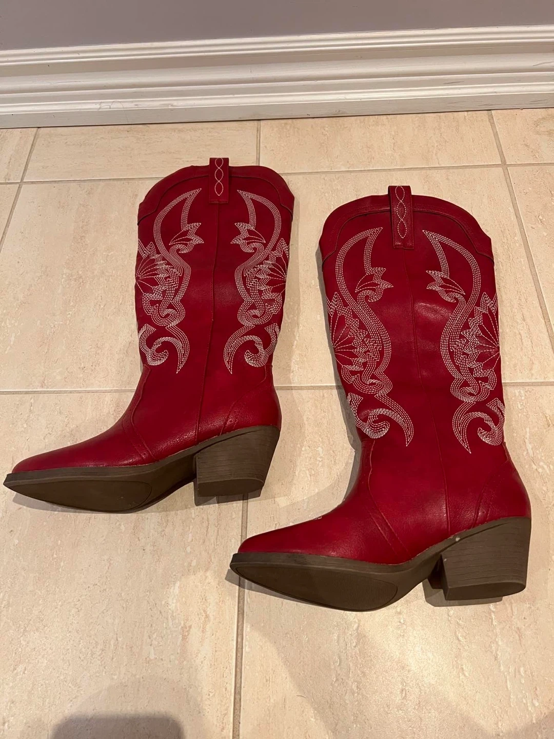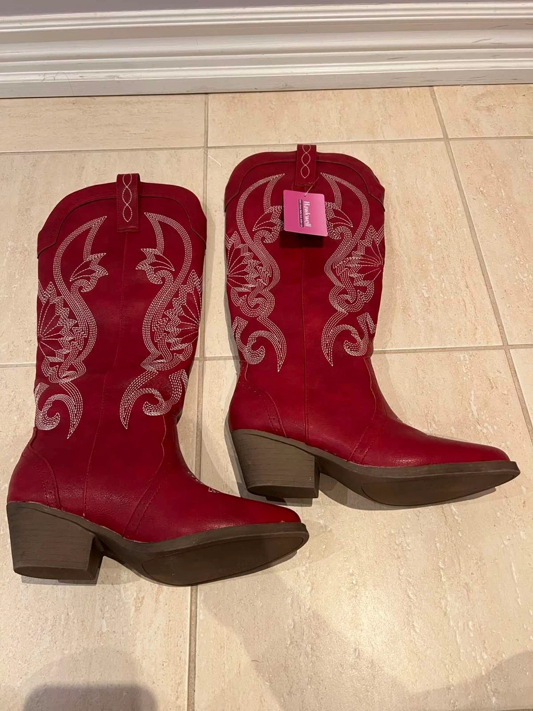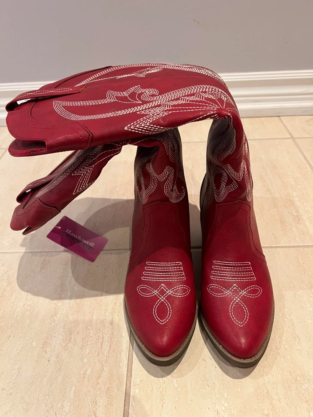 Selling a pair of Hawkwell cowboy boots in red! They have a lovely embroidered design. Perfect for adding a bit of western flair to your wardrobe