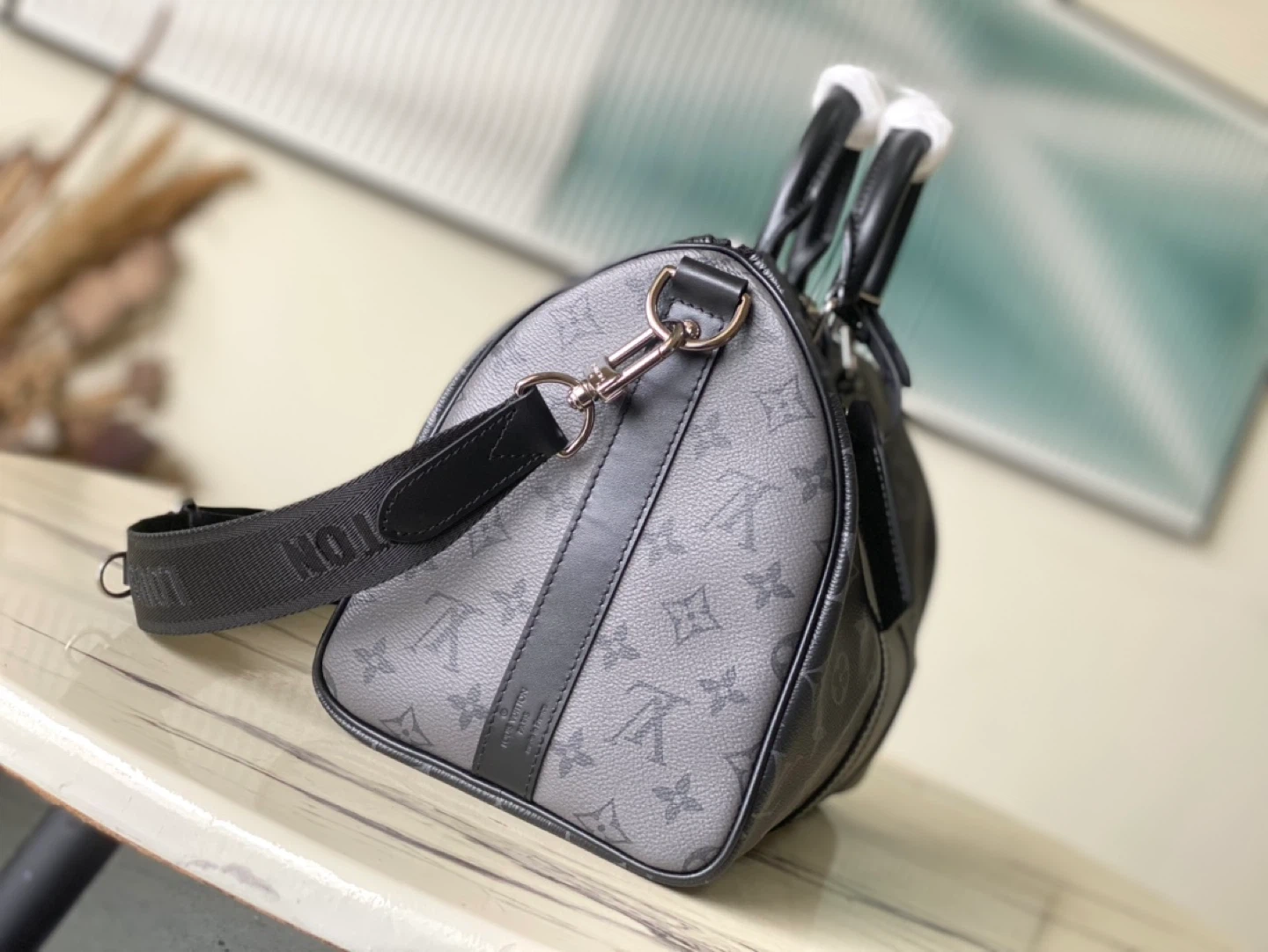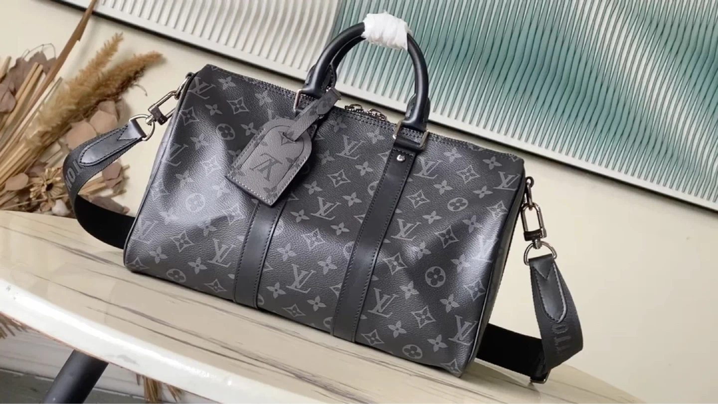 This is a Louis Vuitton Keepall Bandouliere bag in the classic monogram pattern. It's a stylish and functional travel bag with a removable shoulder strap. Perfect for weekend trips or as a carry-on.