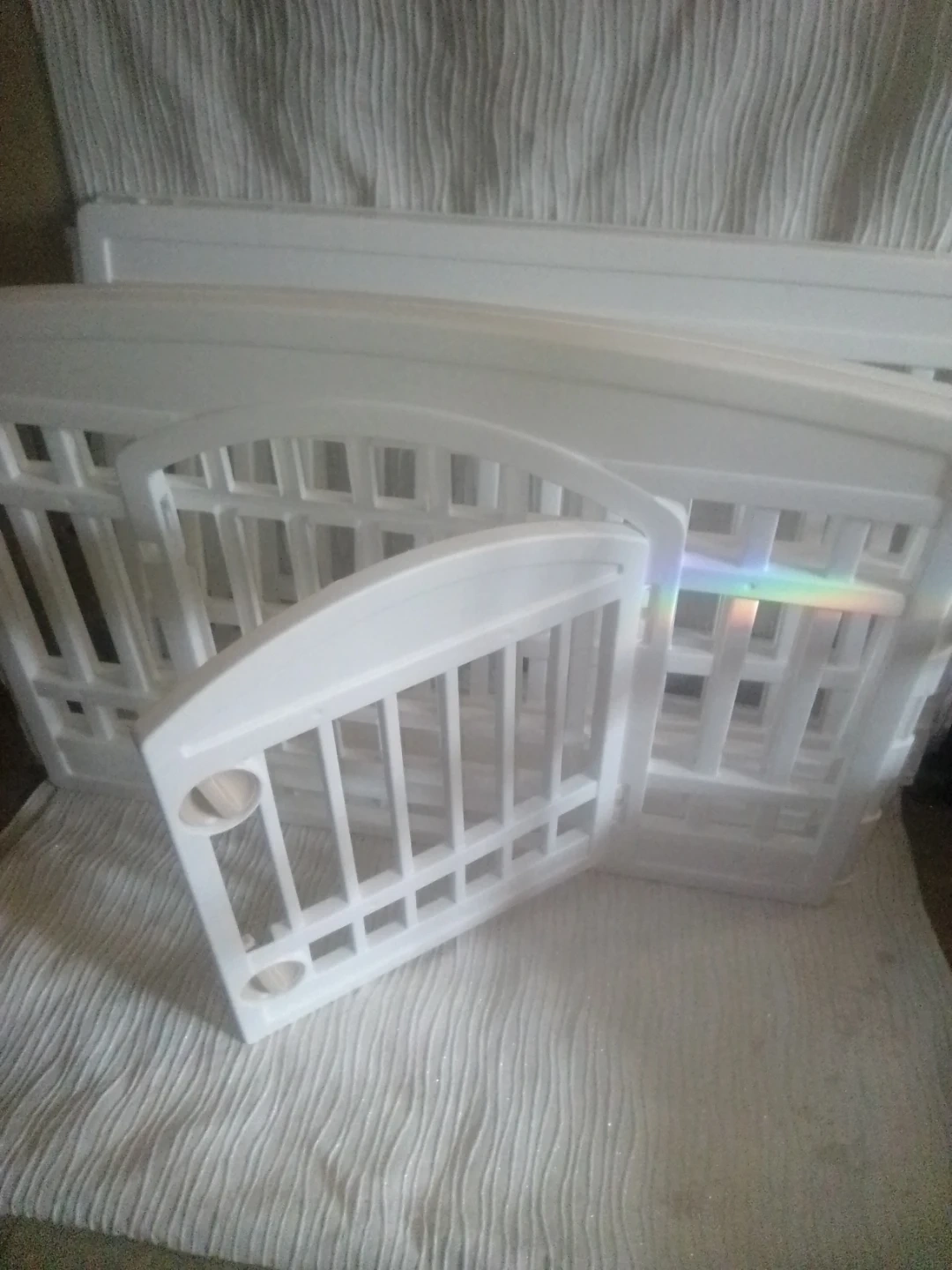 Set of white crib rails play space. Sturdy plastic construction.