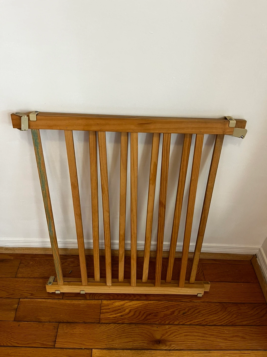 Selling a wooden safety gate, perfect for keeping little ones or furry friends safe! It's in good condition and ready for a new home. Great for stairs or doorways to prevent access to certain areas of your home.