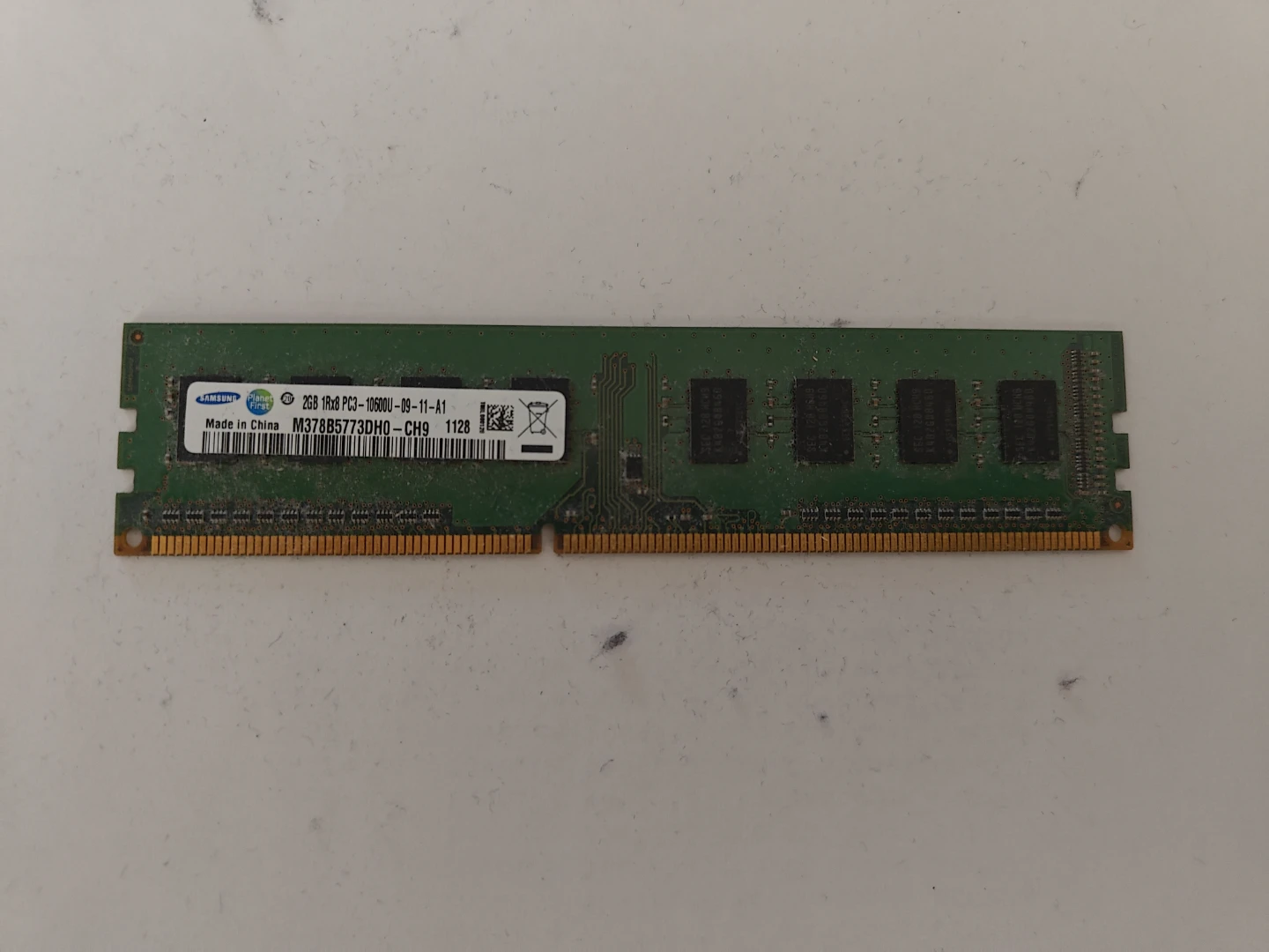 This is a Samsung 2GB RAM module. It's a PC3-10600U type with a speed of 10600. The model number is M378B5773DH0. This RAM is commonly used for computer upgrades.