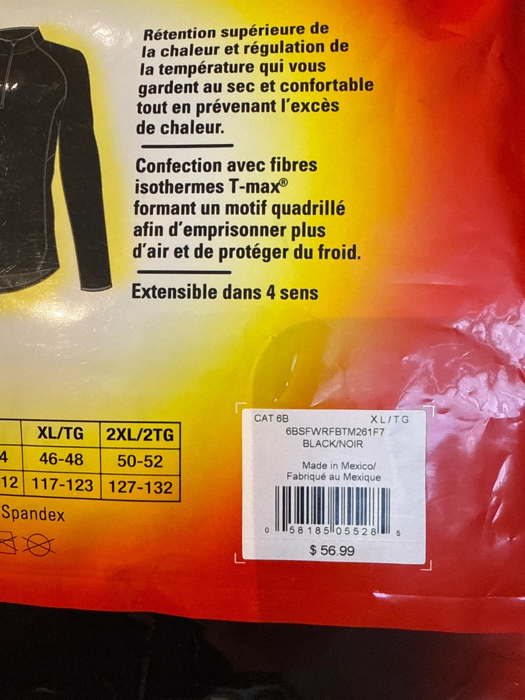 Men's thermal top with T-max Heat Grid Tech Fleece for superior heat retention. Made with 94% polyester and 6% Spandex for 4-way stretch. Keeps you warm and comfortable without overheating. It's designed for cold weather activities. New, still in pkg. original price - $56.99 from Mark’s.