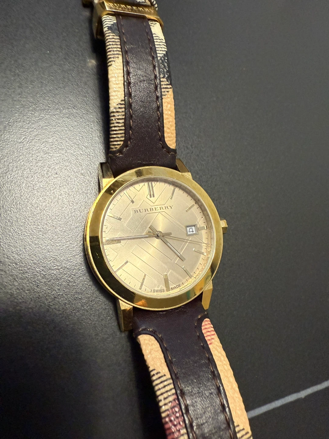Stylish Burberry watch featuring a distinctive patterned strap and gold-tone case. A classic timepiece to elevate your look!