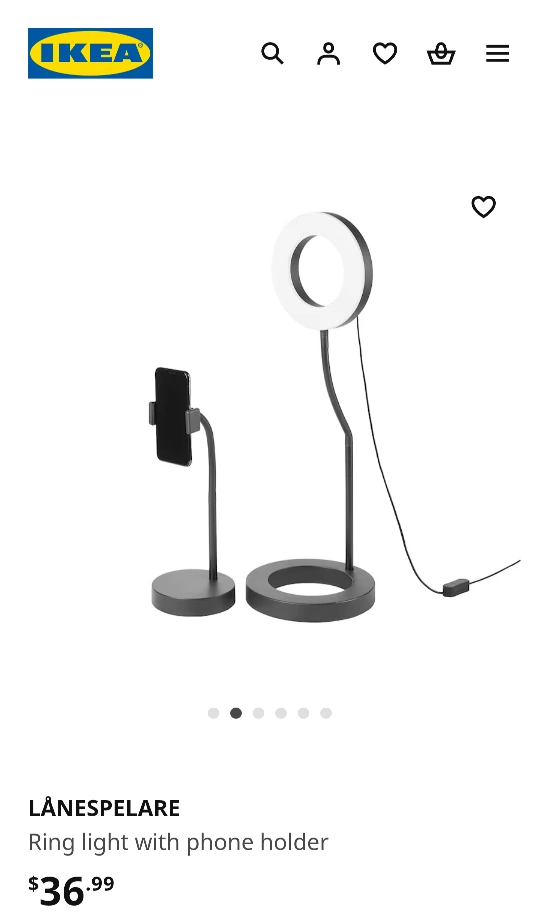 Ring light with phone holder, LANESPELARE from IKEA