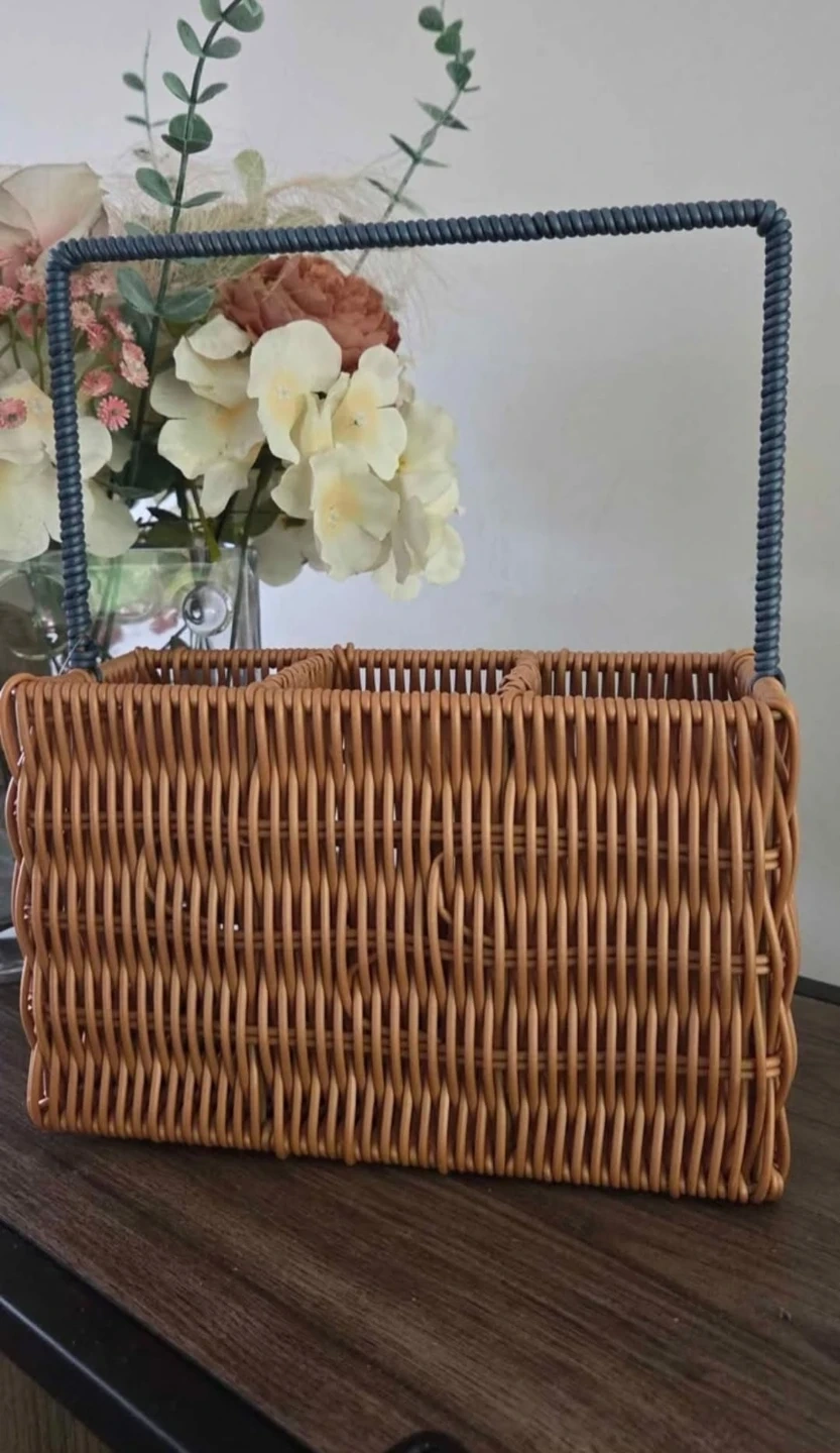 Blue and Brown Wicker Caddy with Handle