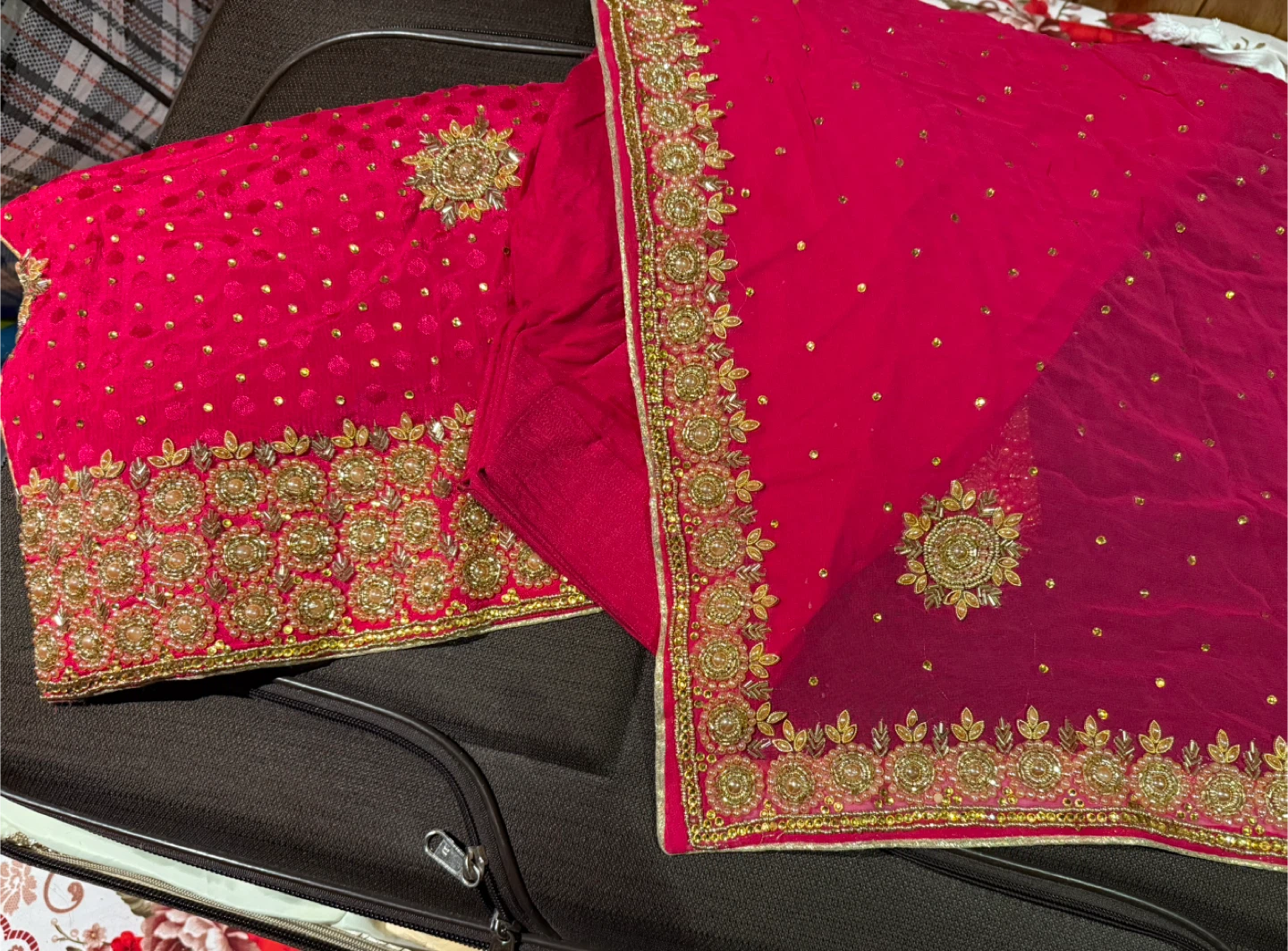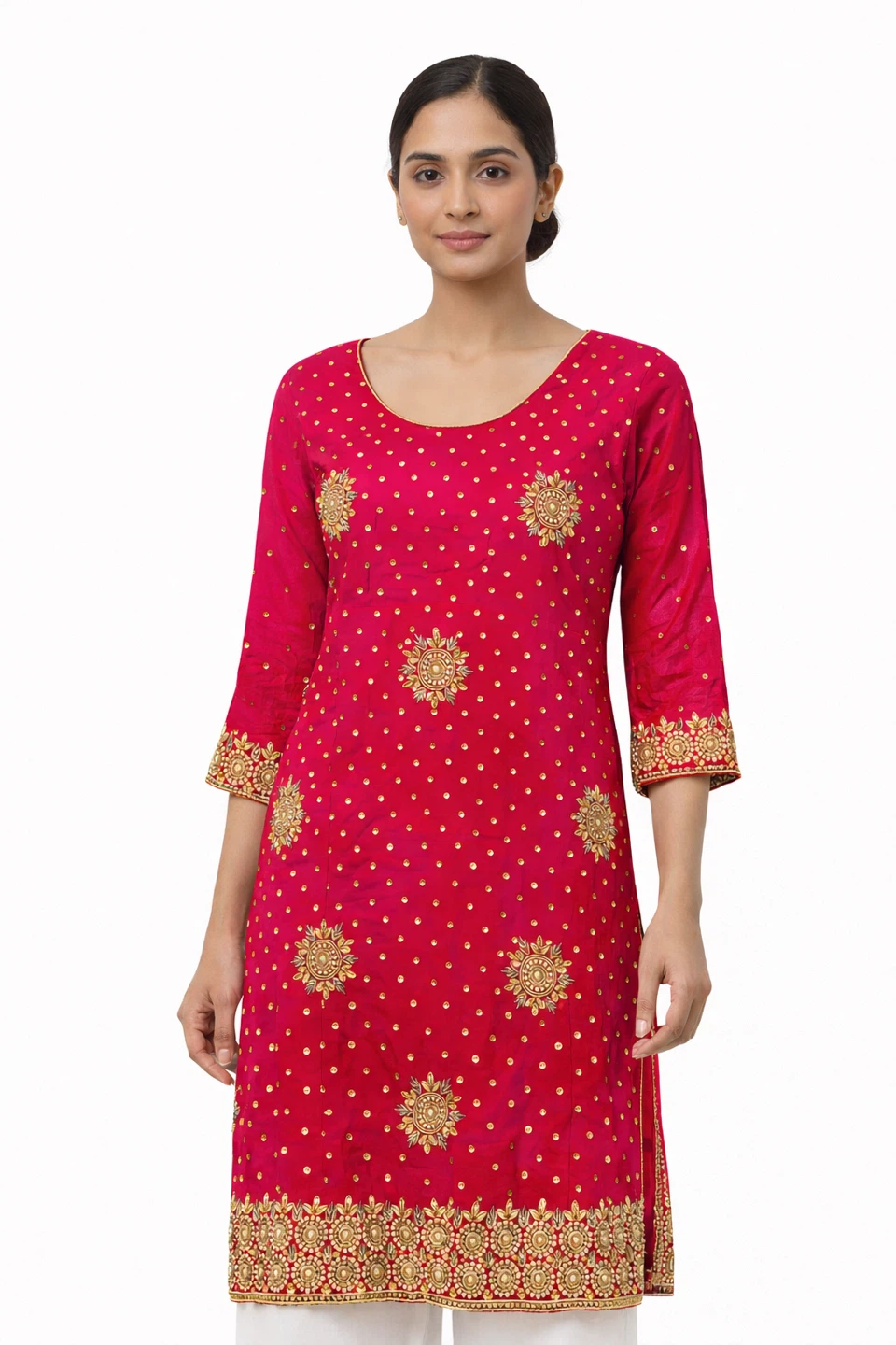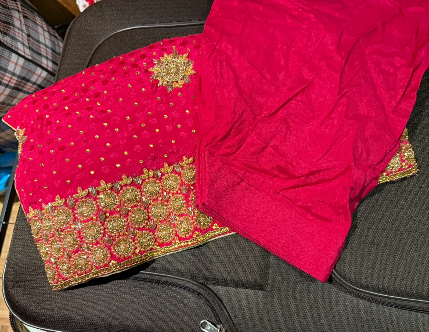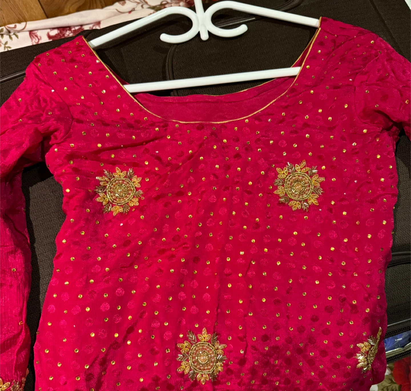 Beautiful Magenta/ Dark Pink salwar kameez with gold embroidery, heavy Dupatta ! This traditional outfit is perfect for special occasions or celebrations. The intricate detailing adds a touch of elegance and charm.