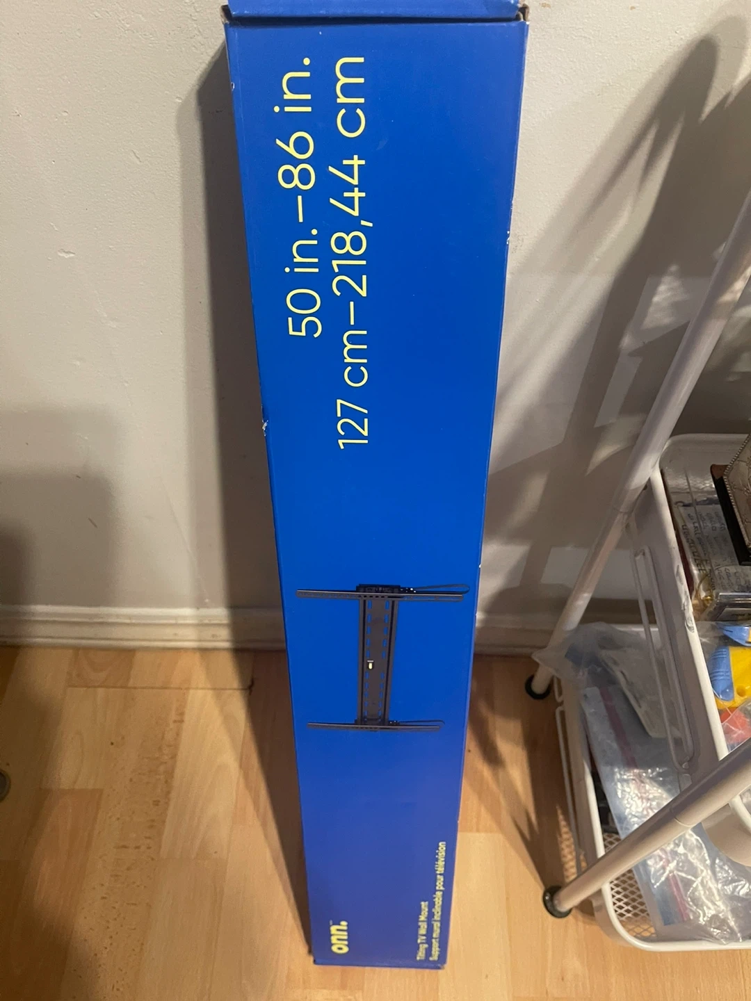 This is an Onn. tilting TV wall mount. It supports TVs from 50 to 86 inches. It's designed for secure wall mounting.