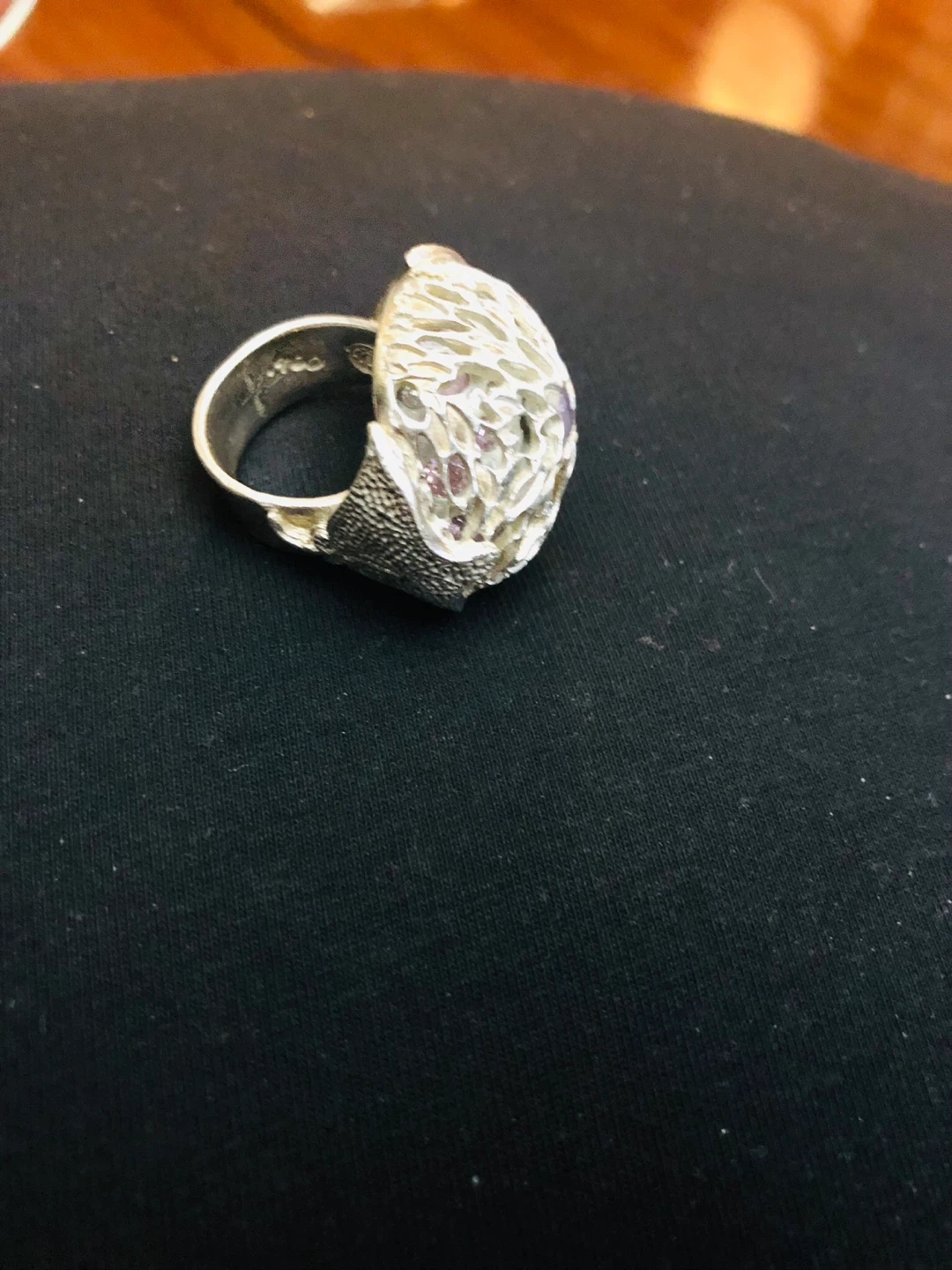 Buy & SellSilver 925 ring with amethyst stone 25.5 gr 9Silver 925 ring with amethyst stone 25.5 gr 9$145This unique silver ancient ring features an intricate design with small amethyst stone . Shape of scutt A real eye-catcher!WHERE TO MEETCheck LocationView MapSELLERverifiedViktoriyaLawrence590 reviews0 chats·0 favorites·9 viewsSEND CHAT TO SELLERHi Viktoriya! I’m interested in your listing.Hi Viktoriya! I’m interested in your listing.Get the Karrot app to chatSign In to chat