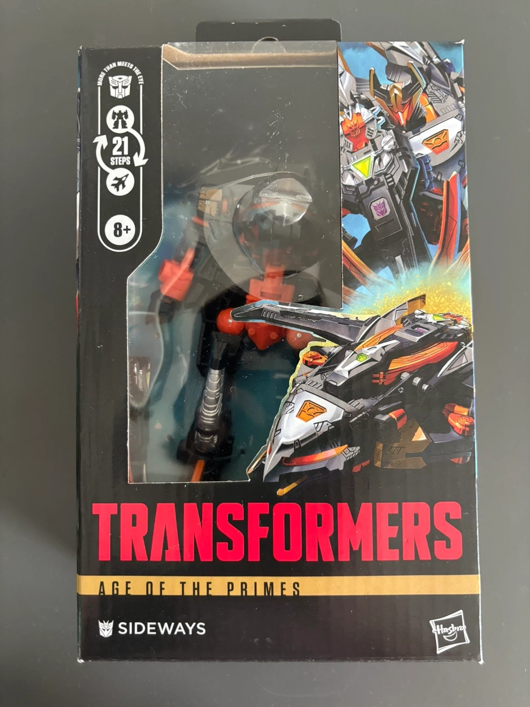 Selling a Transformers Sideways and Excellion action figure from the Age of the Primes series! This figure transforms in 21 steps. It's still in its original packaging and ready for a new home.