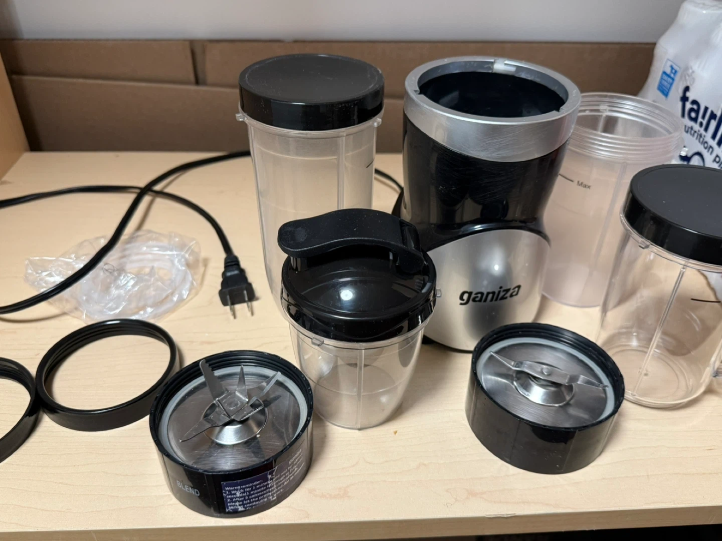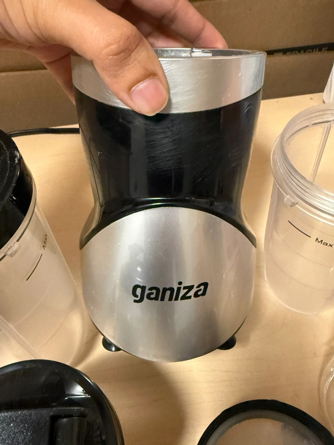 Ganiza GB10 countertop blender in like-new condition. Used lightly over about 9 months β still looks and works great. Comes with everything: multiple cups (different sizes), 2 blade attachments, lids and caps. Does both blending AND grinding β perfect for smoothies, protein shakes, spices, coffee beans, you name it!