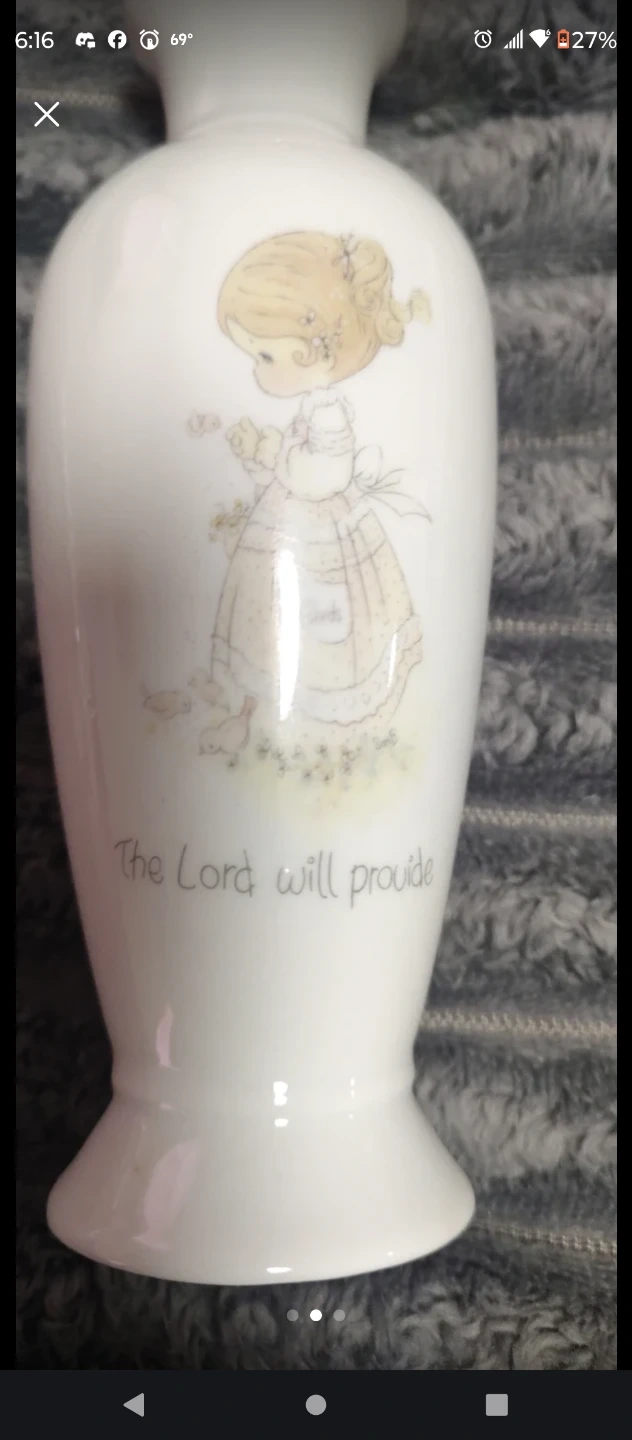Selling a small lot of home and reading extras: a Precious Moments porcelain vase inscribed “The Lord will provide,” a clear pressed-glass vase with starburst detailing, and six Harlequin Intrigue paperbacks (titles include Cold Case Investigation, Alaskan Disappearance, Shadowing Her Stalker, Guardian Defender, Mountain Abduction, and Helicopter Rescue)—a mix of sentimental decor and binge-ready suspense for cheap.