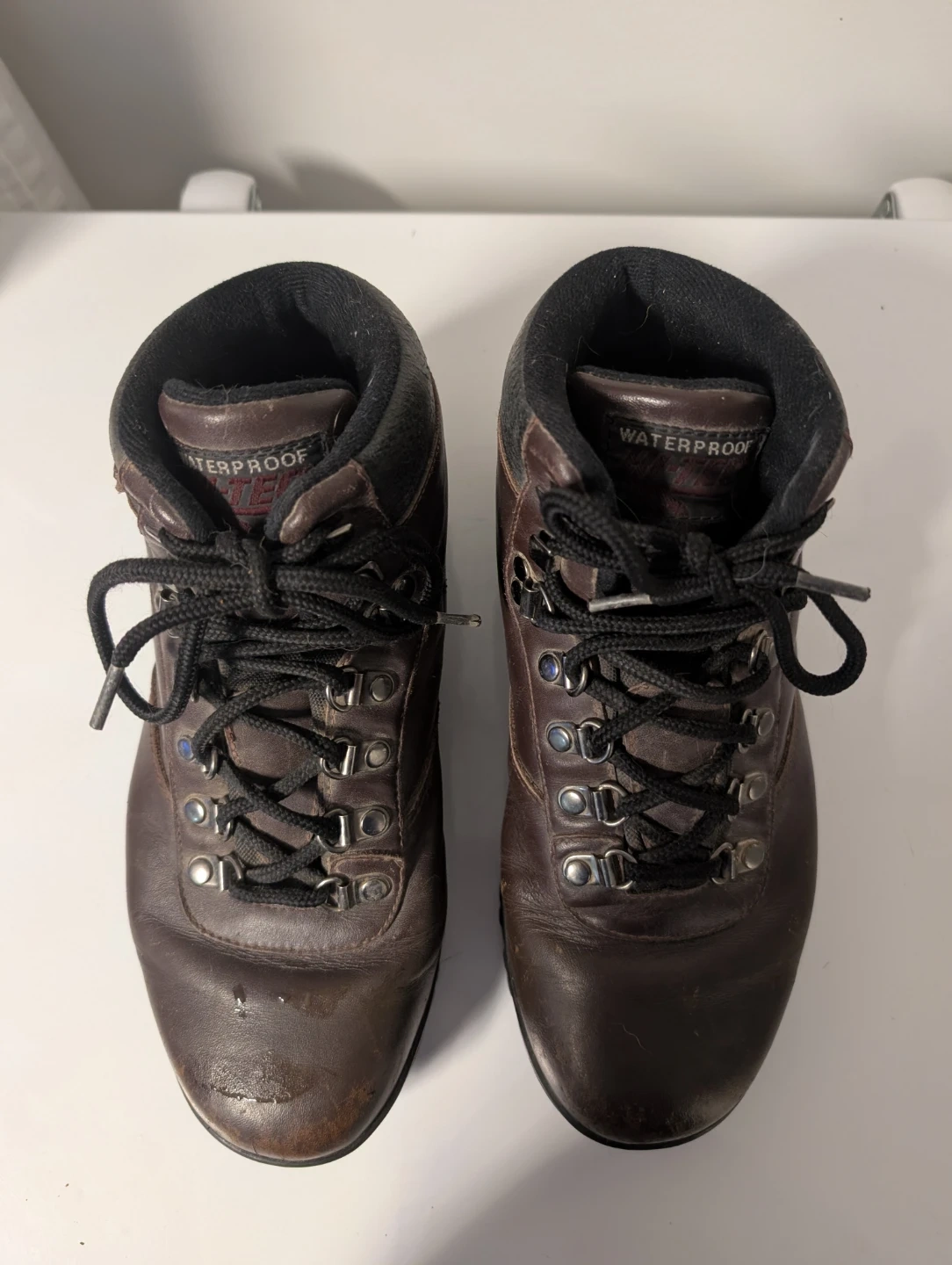 Men's size 8 /.women's size 9.5 Hi-Tec hiking boots. Leather, waterproof, and in great condition with tons of tread. Try on in Westsyde near Save On Foods.