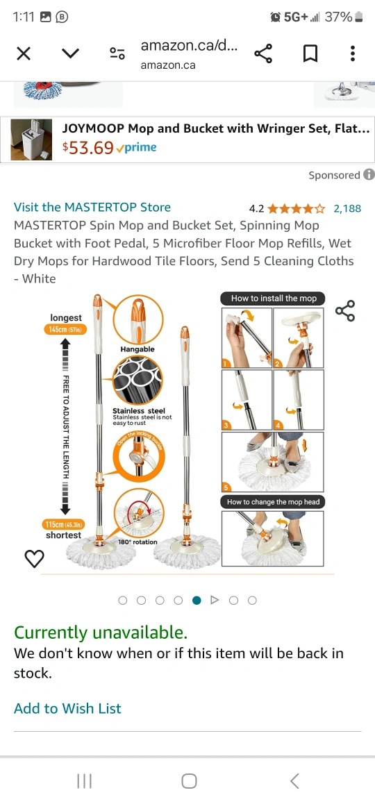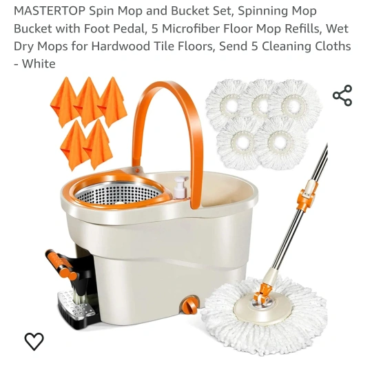 Buy & SellMASTERTOP Spin Mop and Bucket SetMASTERTOP Spin Mop and Bucket Set$85Includes mop, bucket, 5 microfiber mop refills, 5 cleaning cloths, and instructions.ConditionNewWHERE TO MEETCheck LocationView MapSELLERverifiedkbpHuron Heights670 reviews0 chats·0 favorites·21 viewsSEND CHAT TO SELLERHi kbp! I’m interested in your listing.Hi kbp! I’m interested in your listing.Get the Karrot app to chatSign In to chat
