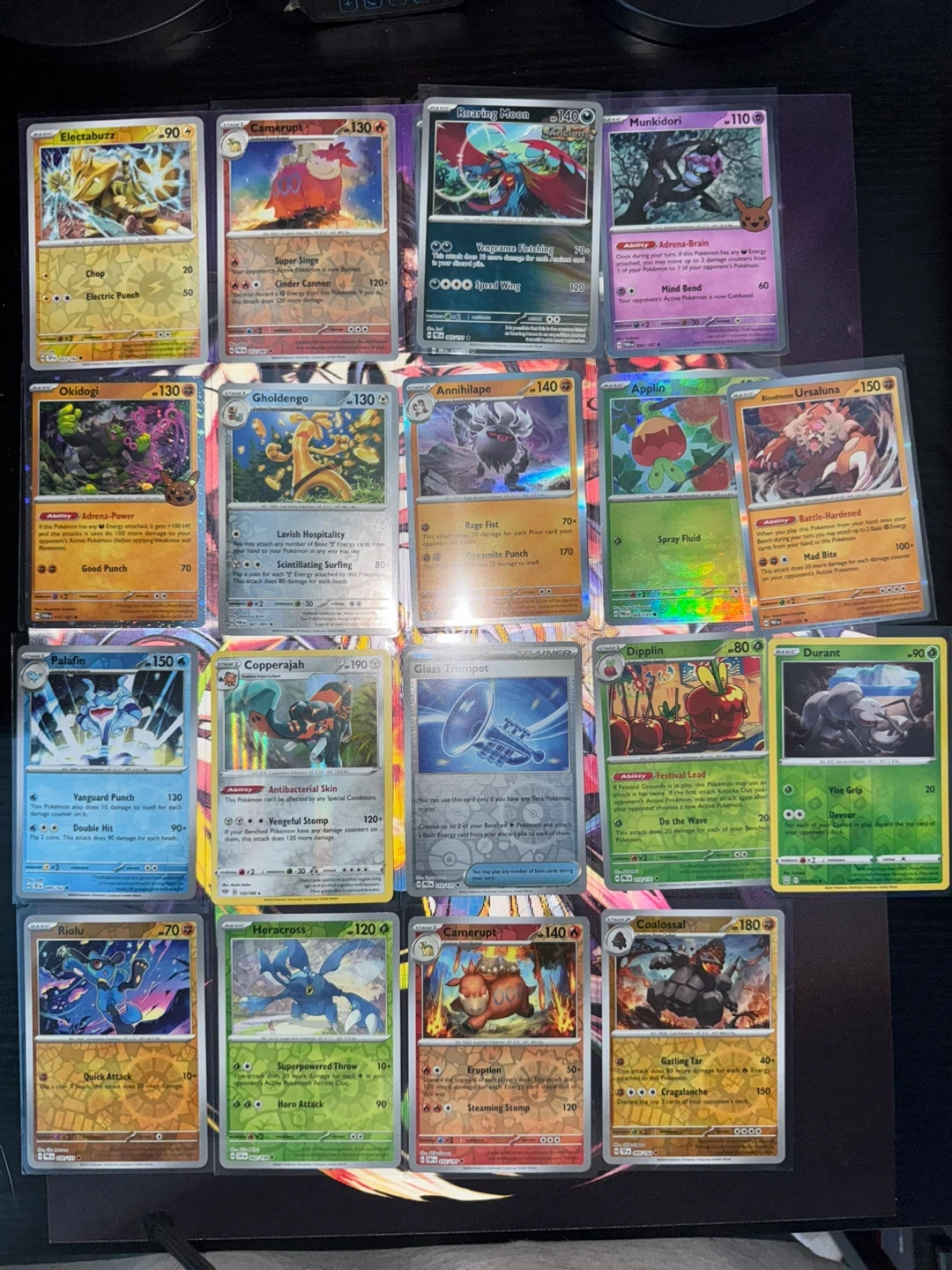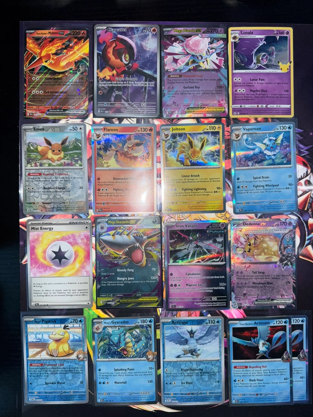 Mix of Prismatic, destined rivals, Celebrations 25 and more Collection of various Pokemon TCG cards. Includes popular characters and rare cards. Great for collectors or players looking to expand their deck. All cards pictured are included. 96 cards