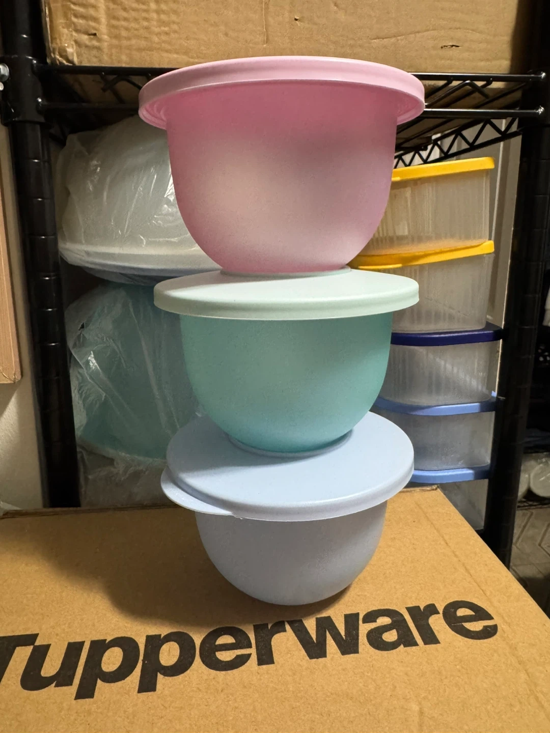 Tupperware Mixing Bowls Set (3) - Pink, Teal, Lavender
