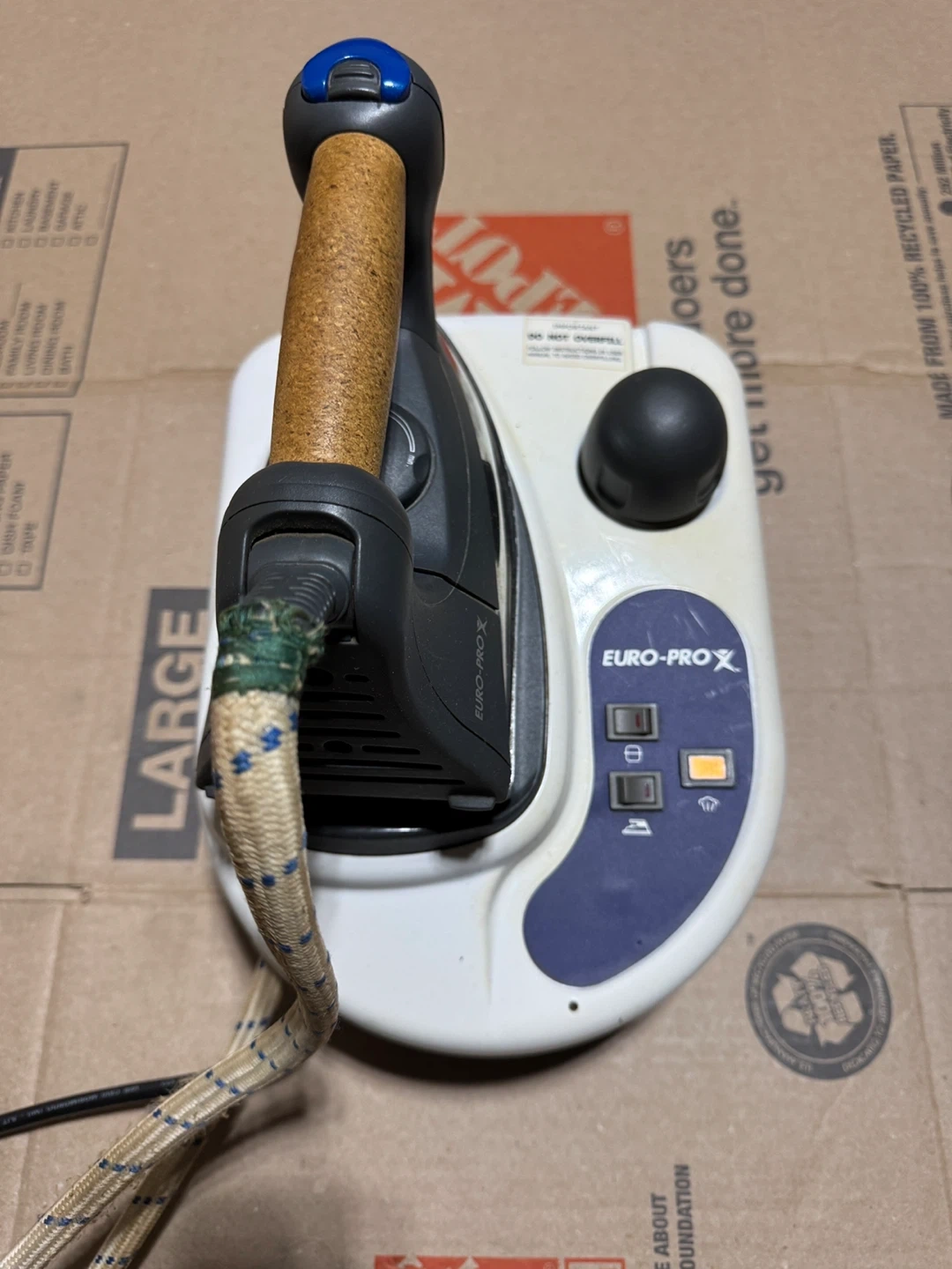 Euro-Pro X steam generator, model EP8015. Water capacity is 1 litre. Working pressure is 3.5 bar. Made in Italy/EU. Household use only.