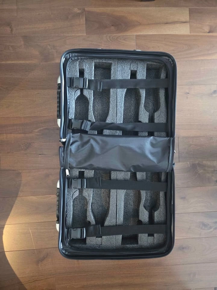 A wine suitcase for the wine lover. This was a gift, but hubby didn't like it. My loss, your gain. The VinGardeValise® is luxury travel luggage that provides quality, safety, and security for traveling with your favorite wine. It includes deep foam patented inserts to accommodate up to 8 bottles (750 ml) of wine. Four of the 2-bottle inserts are removable, allowing you to travel with as many or as few bottles as you like, with ample space for clothing and other travel items. It has 5-star reviews. Selling for $275 (currently on sale for $319 USD).