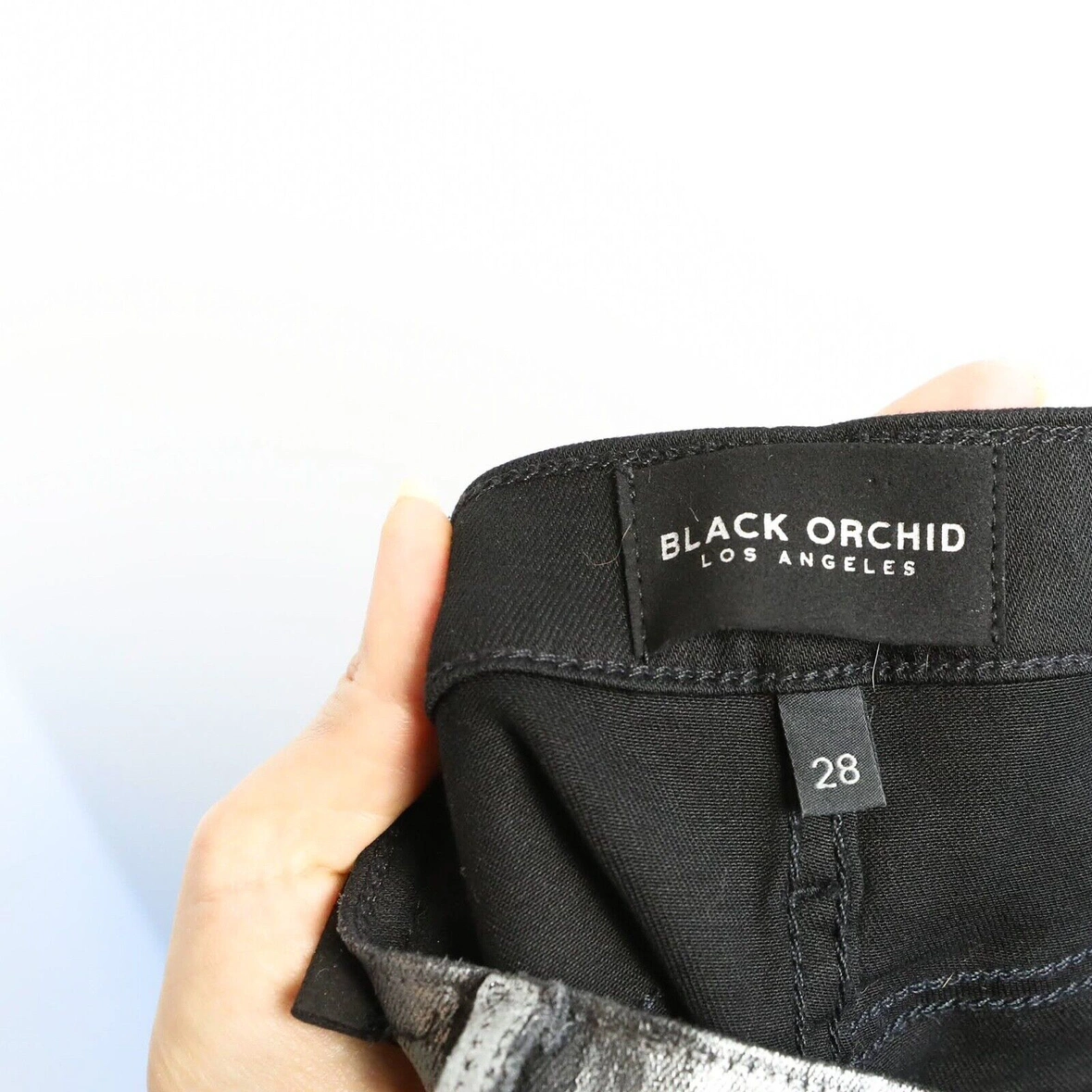 Black Orchid jeans size 28 metallic silver black skinny stretch