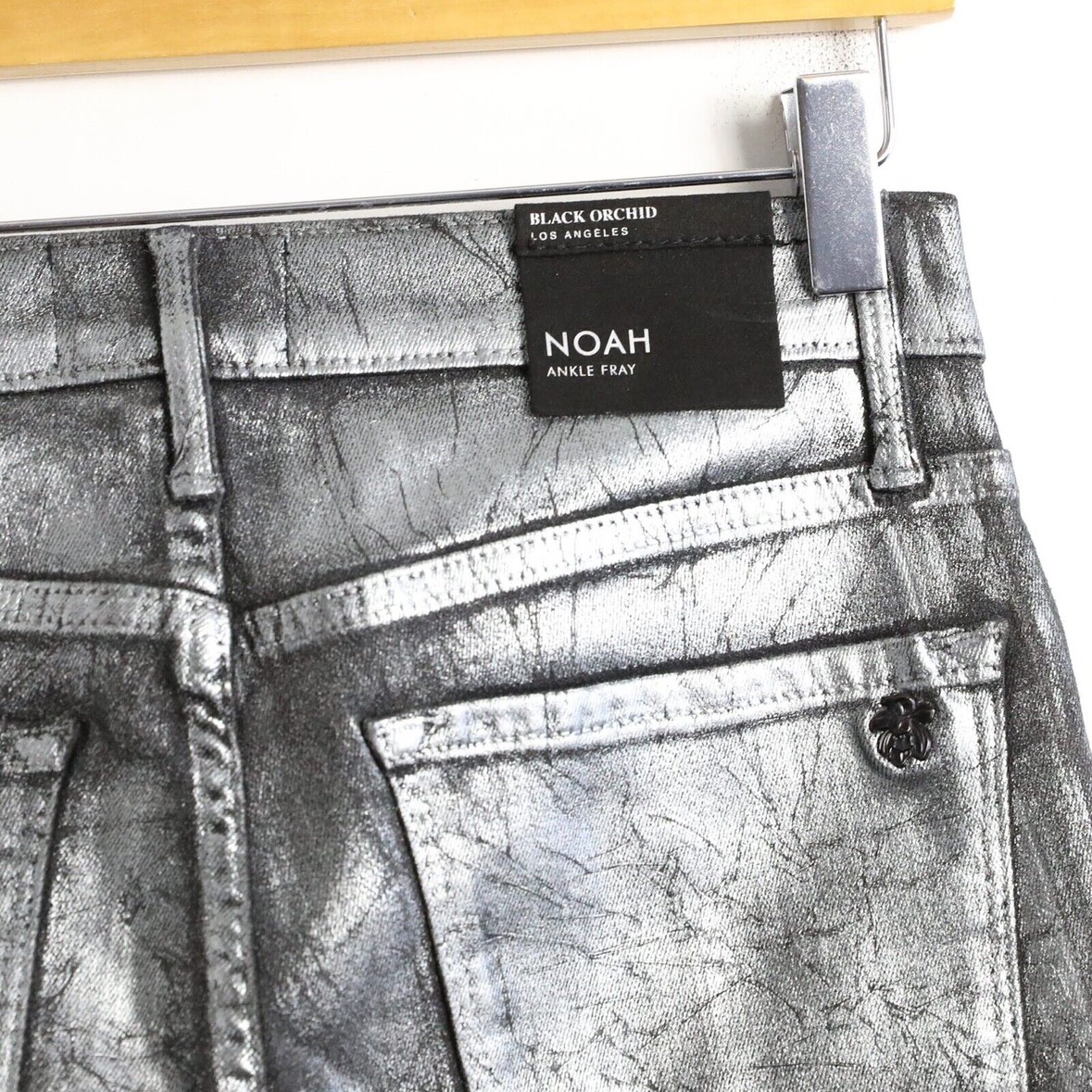 Black Orchid silver/black metallic jeans.