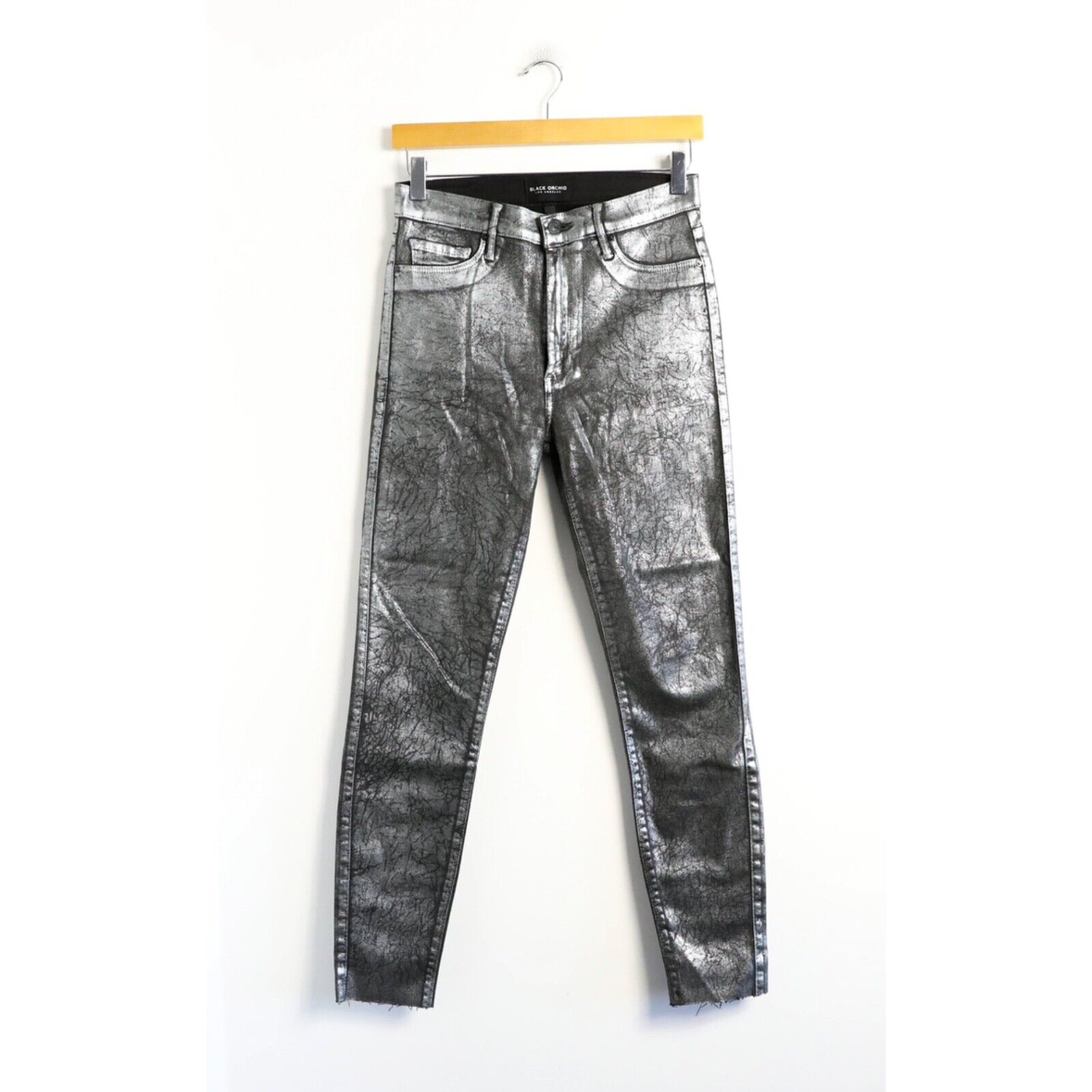 Black Orchid jeans size 28 metallic silver black skinny stretch