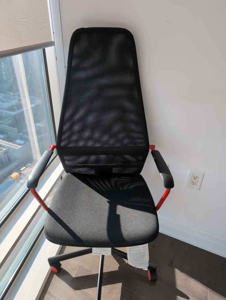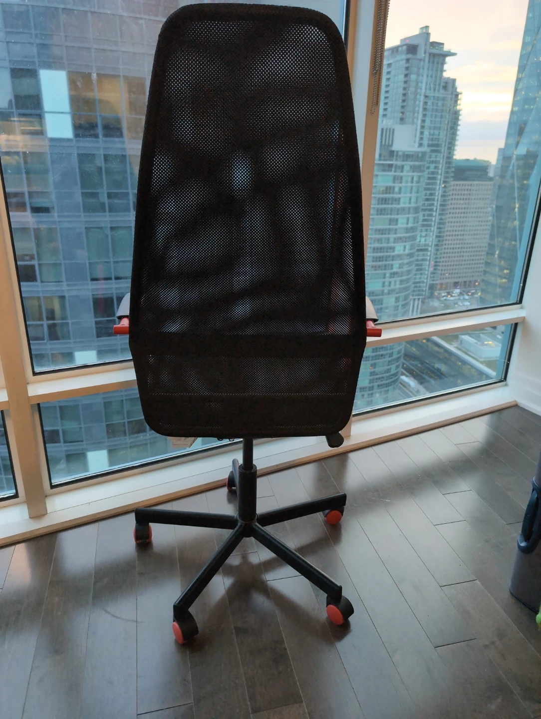 Selling a gently used IKEA chair in black. It's super comfy and in great shape. Perfect for working from home or gaming! The mesh back keeps you cool, and the adjustable height makes it easy to find the perfect position