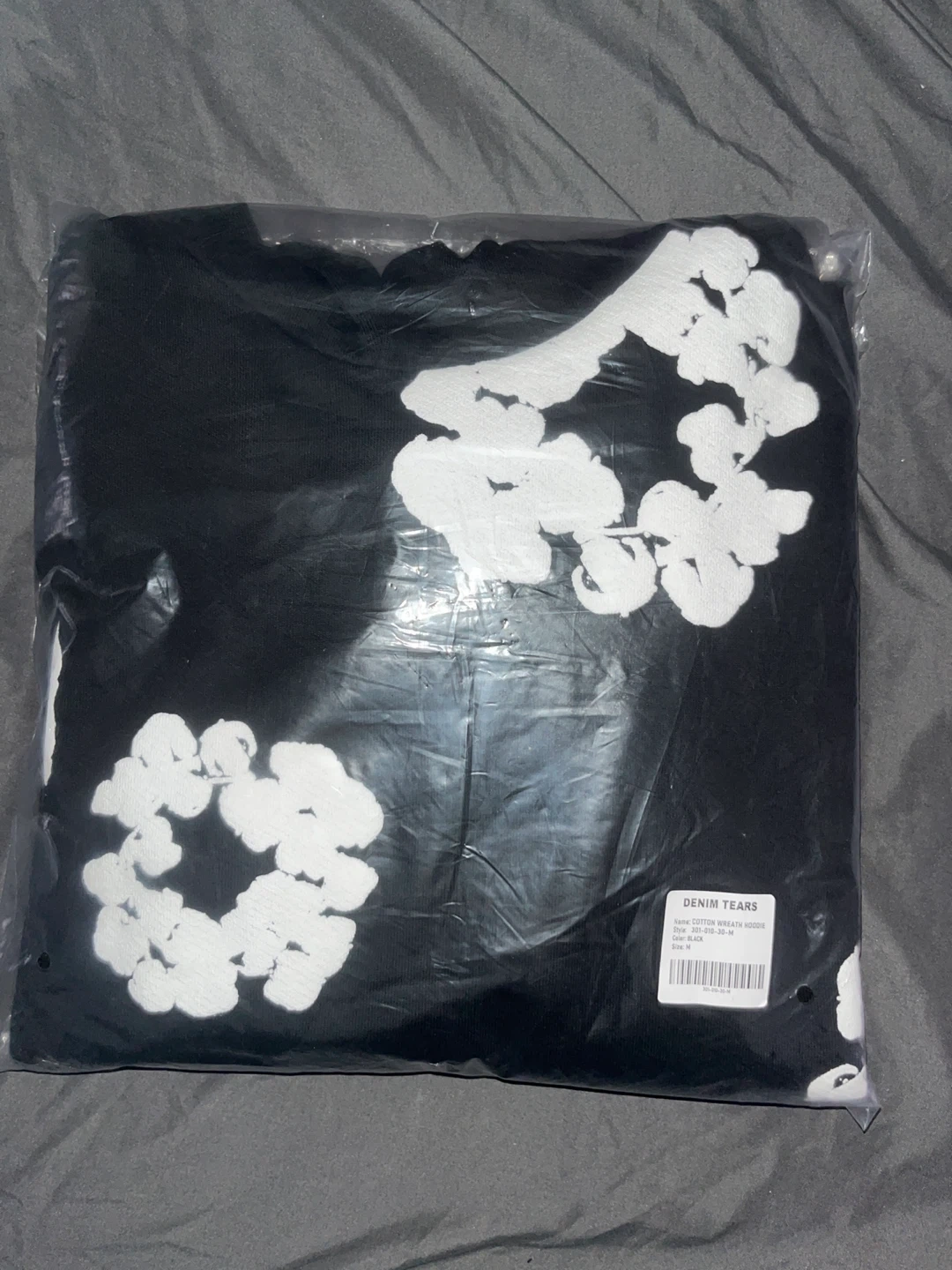 Denim Tears Hoodie - Black with White Floral Print - Size M