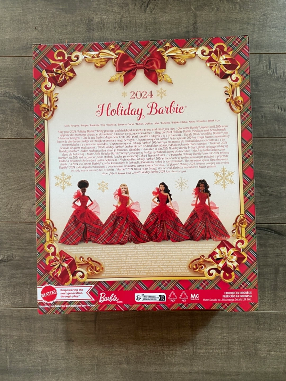 This is the 2024 Holiday Barbie Signature doll. It comes in its original packaging, making it a perfect collectible item. This doll is designed for display or as a special holiday gift.