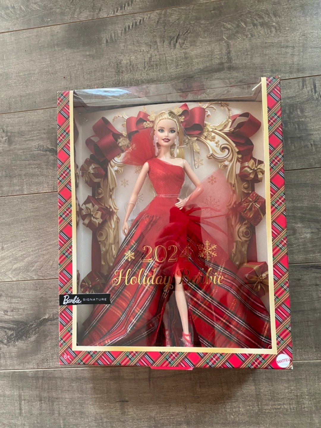 This is the 2024 Holiday Barbie Signature doll. It comes in its original packaging, making it a perfect collectible item. This doll is designed for display or as a special holiday gift.