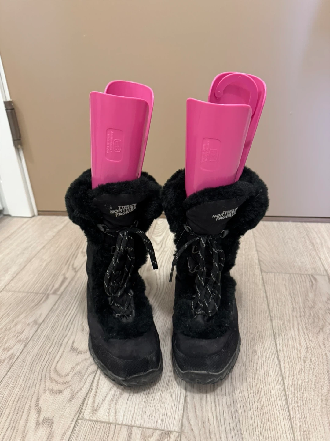 Keep your feet warm with these stylish black winter boots from The North Face. They feature a cozy fur trim around the collar and a secure lace-up closure. The waterproof padded exterior makes them perfect for snowy days.