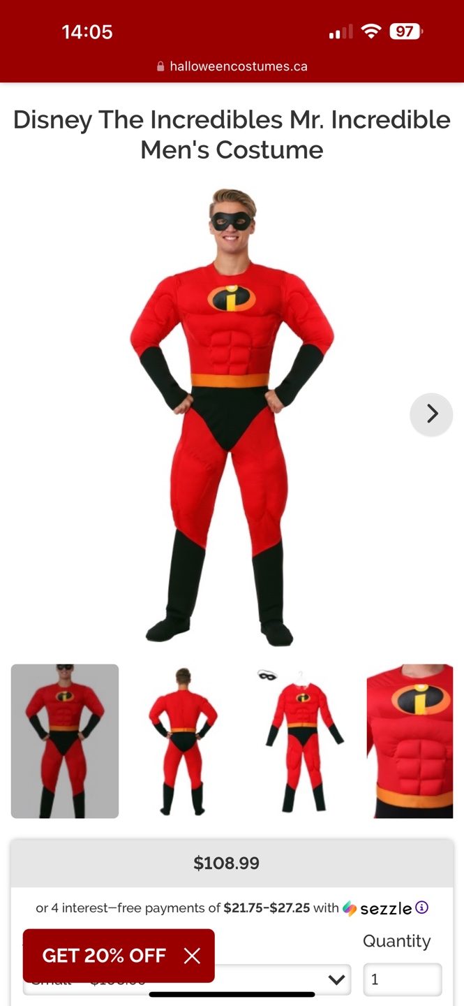1 / 41 / 4Buy & SellThe Incredibles Mr. Incredible CostumeThe Incredibles Mr. Incredible Costume$80Adult size costume with built-in muscle padding. Includes a mask and a pair of gloves. Sells for $109 on Halloween Costumes.WHERE TO MEETCollege SubwayView MapSELLERverifiedGuiOld Toronto1024 reviews3 chats·0 favorites·29 viewsSEND CHAT TO SELLERHi Gui! I’m interested in your listing.Hi Gui! I’m interested in your listing.Get the Karrot app to chatSign In to chat