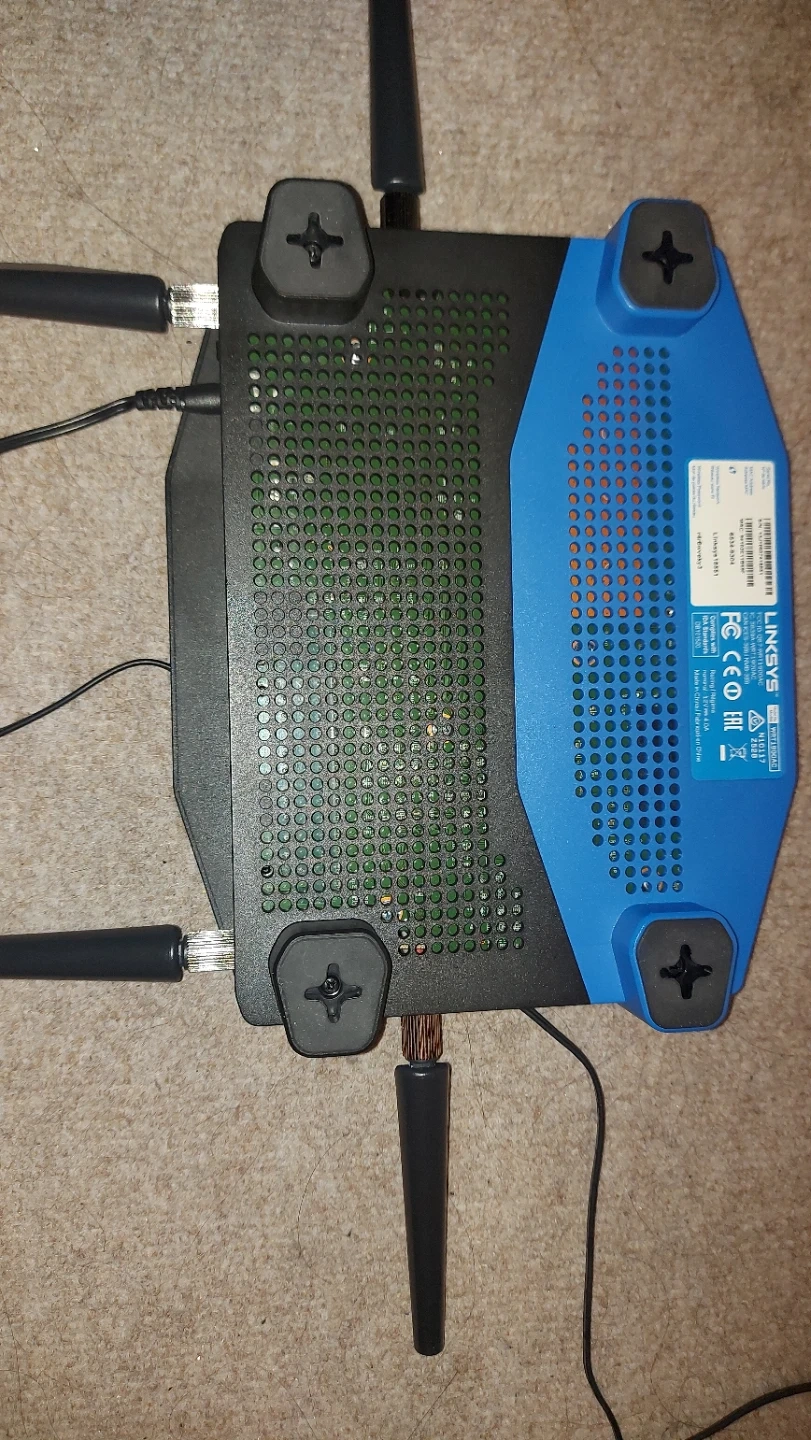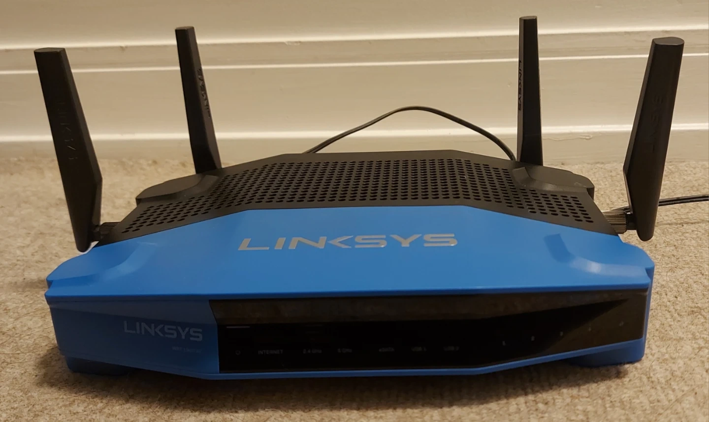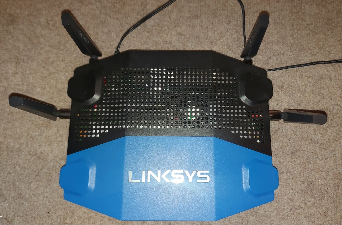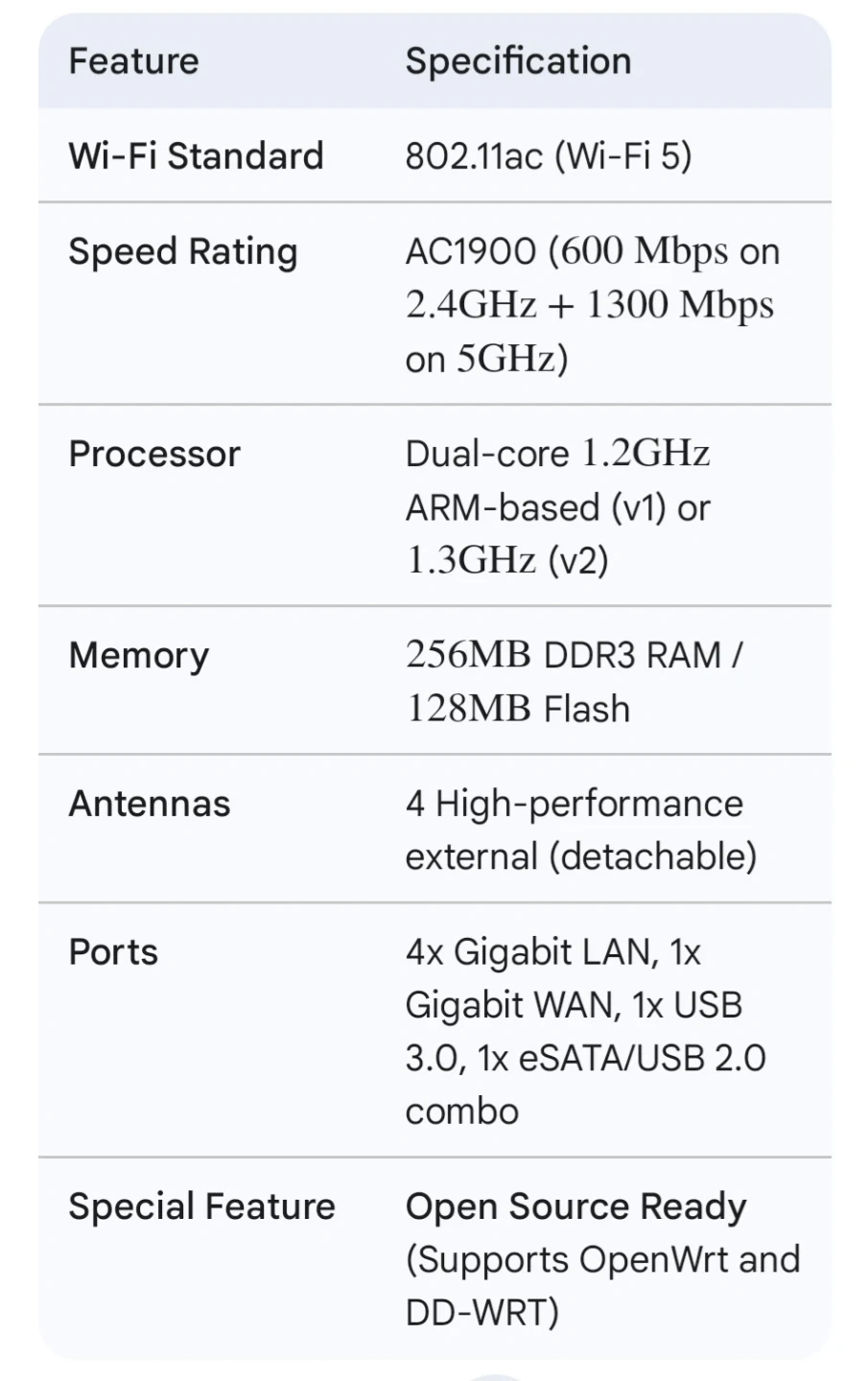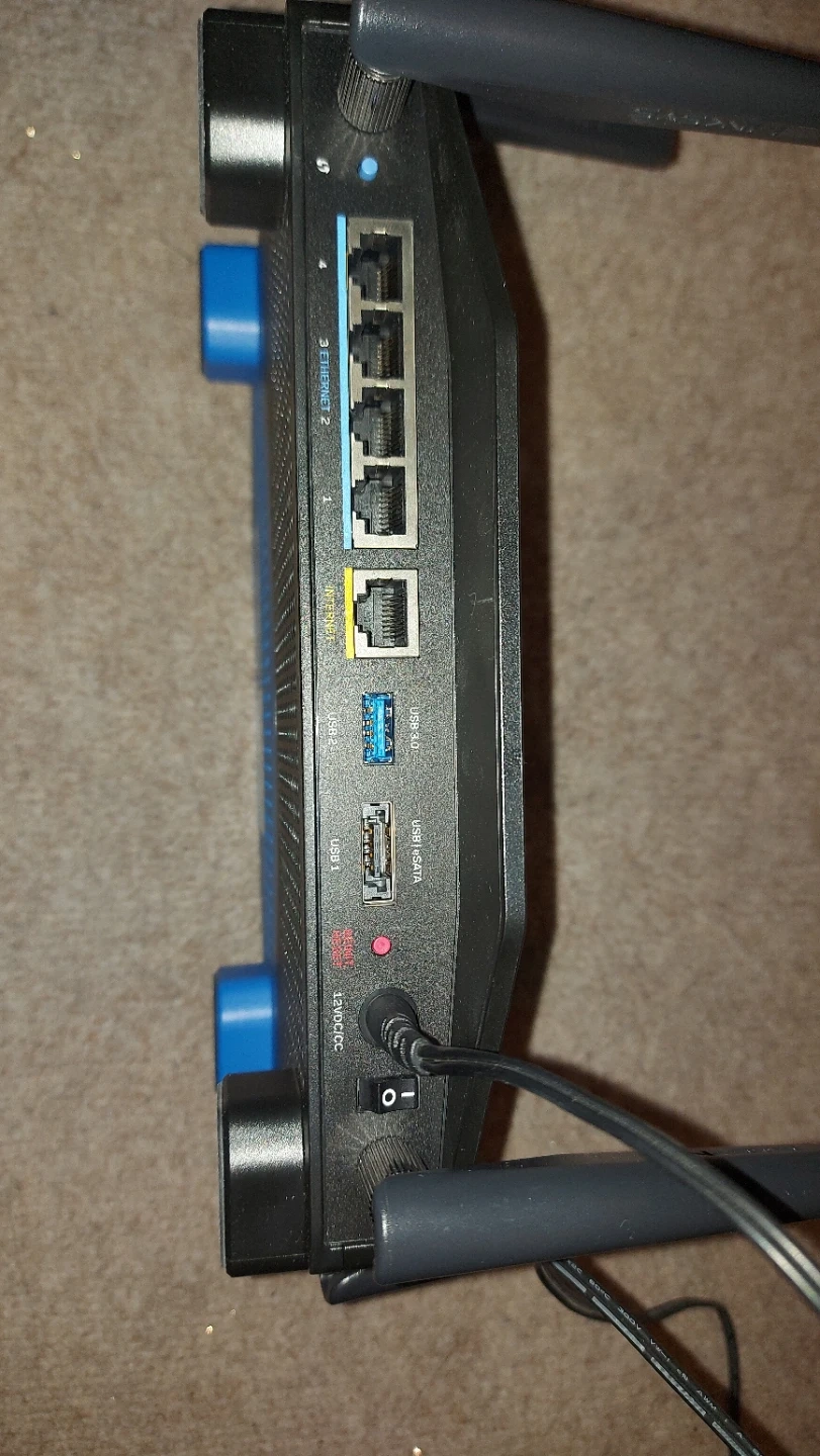 This is a Linksys WRT1900AC router. It comes with 4 Gigabit Ethernet ports and 2 USB ports. Great for upgrading your home network!