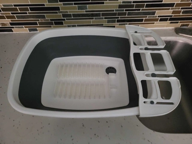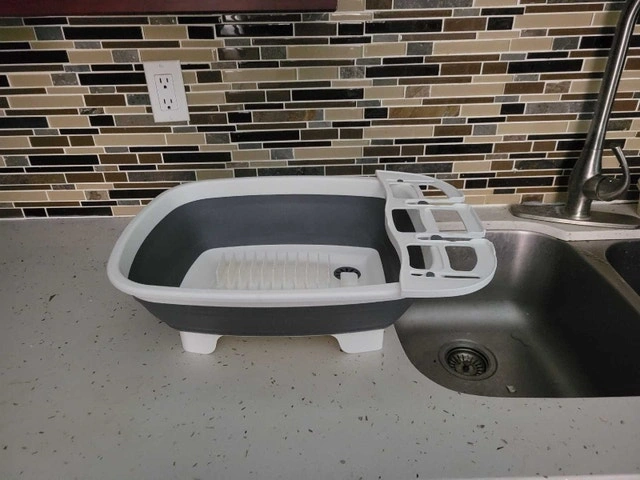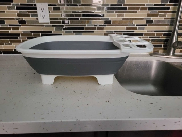 This used dish rack is perfect for any kitchen, designed to efficiently dry your dishes with its foldable design and built-in drainer to prevent water buildup. I'm selling it because I recently upgraded my kitchen setup. It has a foldable design for easy storage and a compact size that fits neatly on countertops. If the ad is up, the dish rack is available and ready to find a new home. Cash accepted.