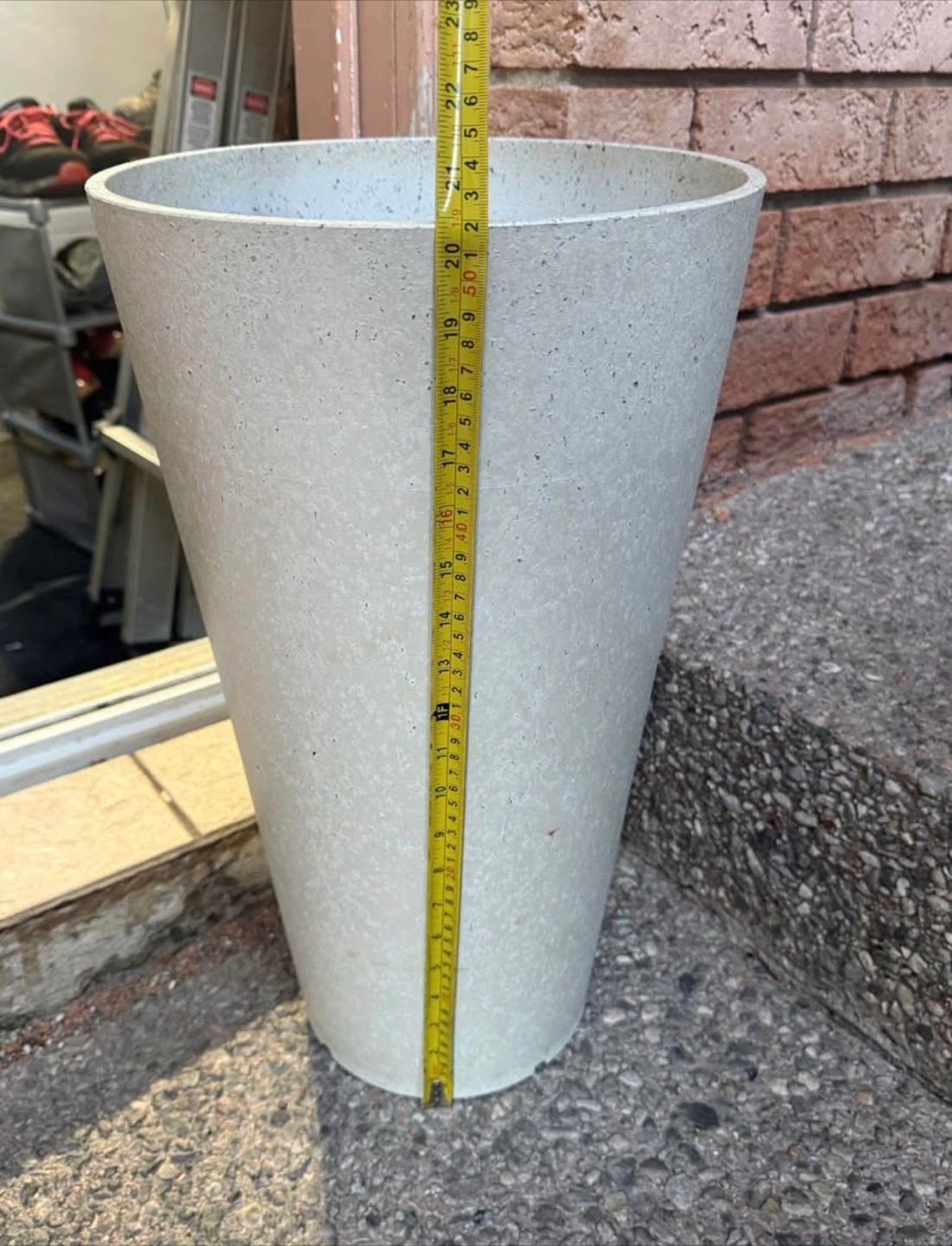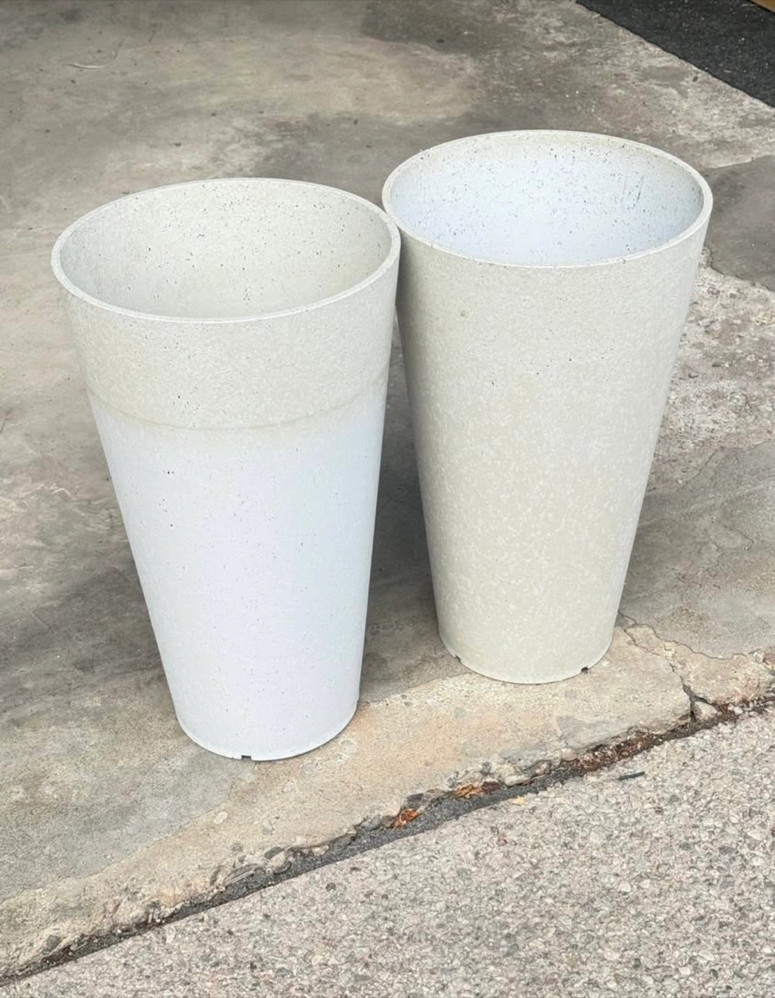 Two tall planters with a concrete-like finish are available. They are white and measure approximately 22 inches in height. Perfect for adding some greenery to your space!