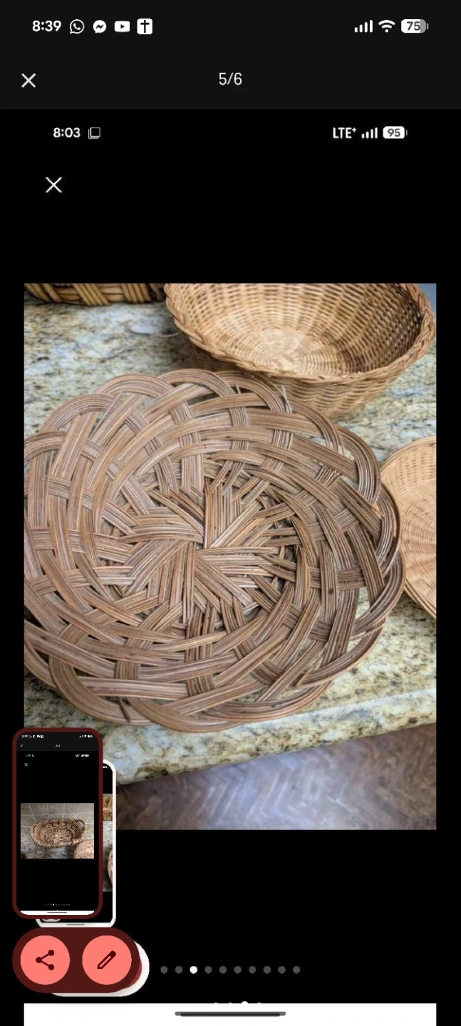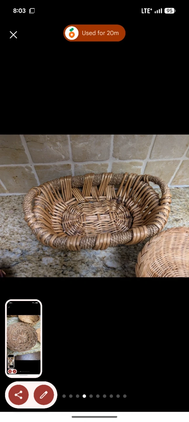 A collection of five assorted wicker baskets for storage or decor. Includes a unique owl-shaped one and a round woven tray. They're all made from natural woven materials.