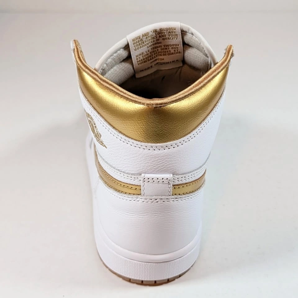 Jordan's iconic Air Jordan 1 Retro High OG sneakers are a gilded take on MJ’s first signature model. They’re crafted from pristine white leather with glossy gold accents and a detachable logo charm. The Wings and Swoosh logos are the same as the prototype.