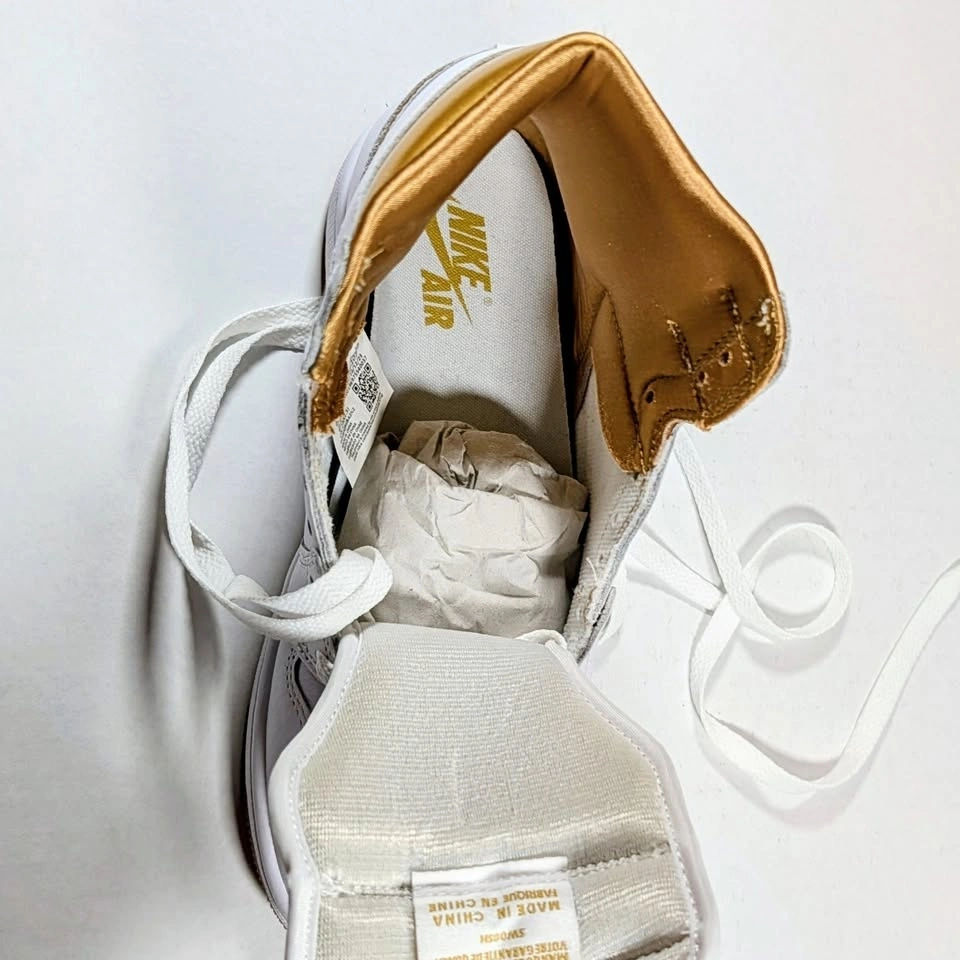 Selling one left Air Jordan 1 Retro High OG "Metallic Gold" in Women’s Size 6. It's a rare and highly collectible shoe, perfect for adding a standout piece to your collection.