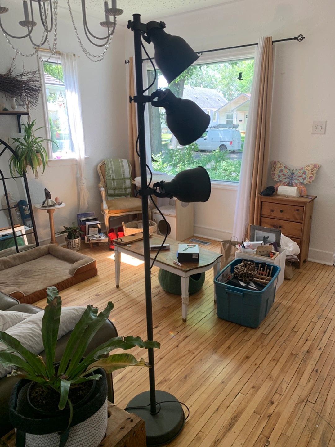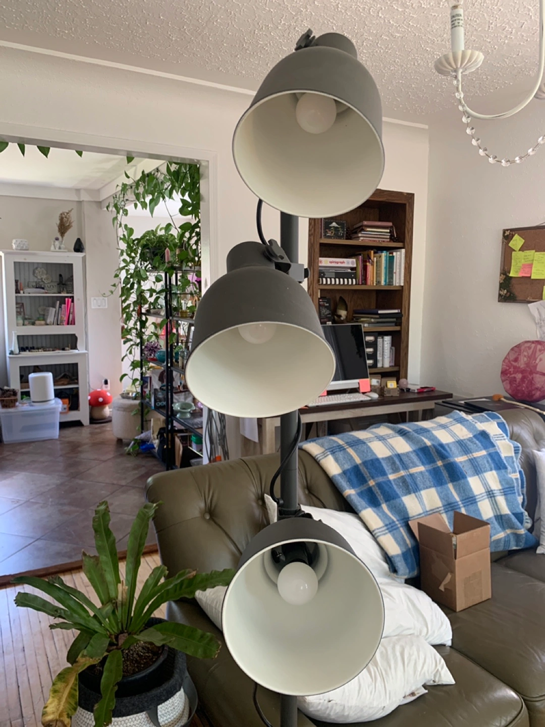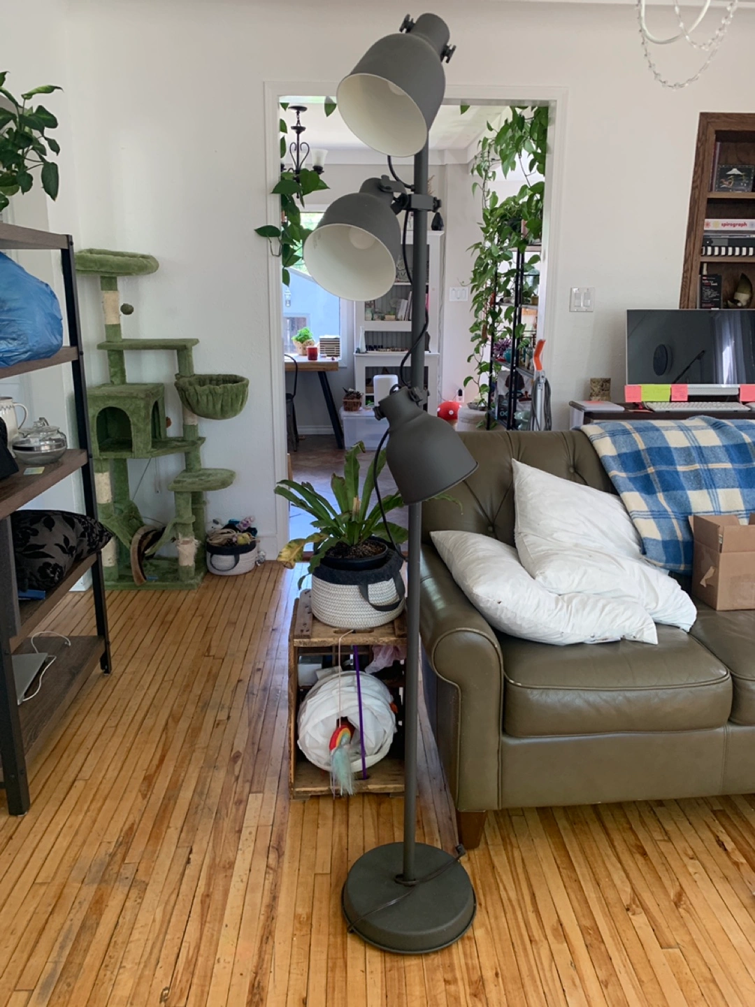 Selling a floor lamp with three adjustable heads. It's in great condition and perfect for adding some extra light to any room.