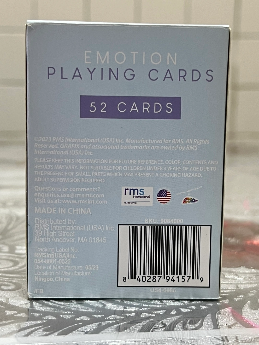 New deck of playing cards. 52 cards, ages 6+. Emotions depicted on cards.