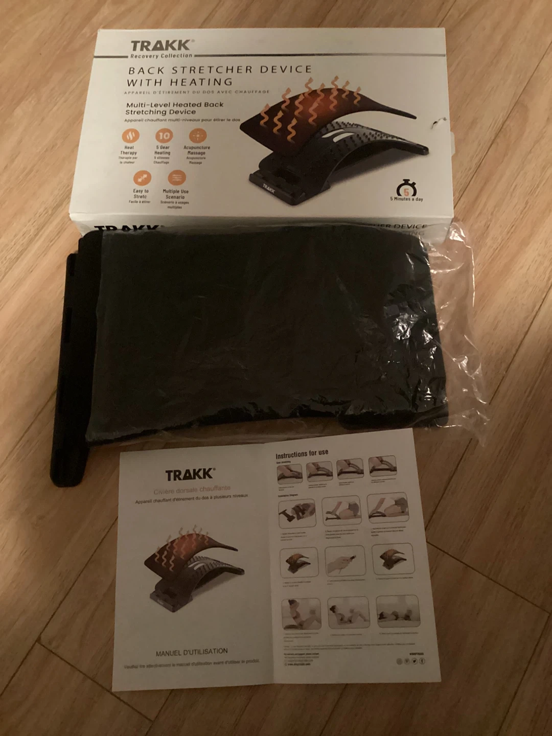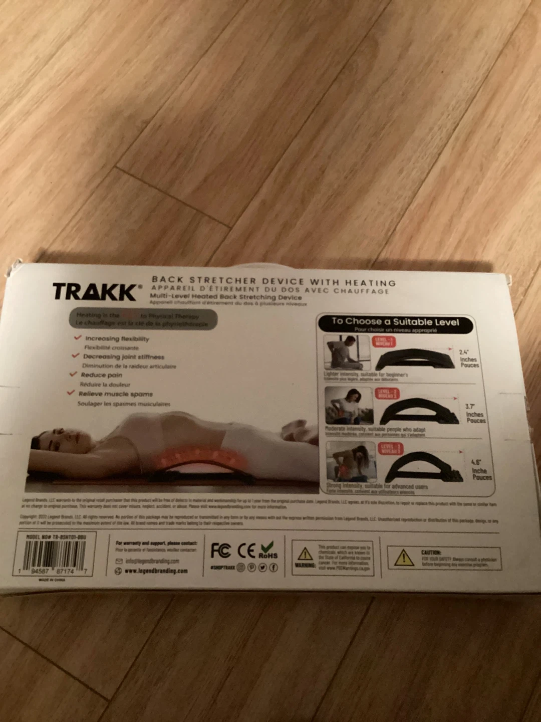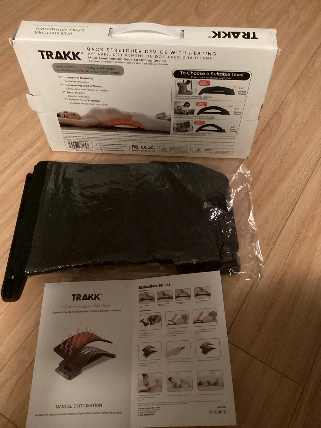 Get some relief with this TRAKK back stretcher! It features multi-level heated back stretching, heat therapy, and acupuncture pressure. It's easy to stretch and can be used in multiple scenarios. It also comes with the box and instructions for use