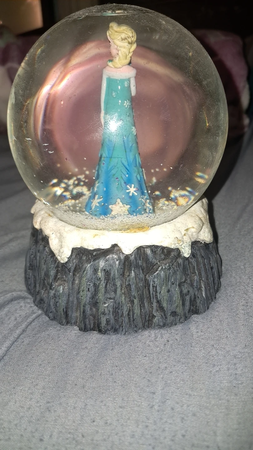 This Disney snow globe features Elsa from Frozen. It's a decorative piece with glitter inside the globe. Made by Department 2015.