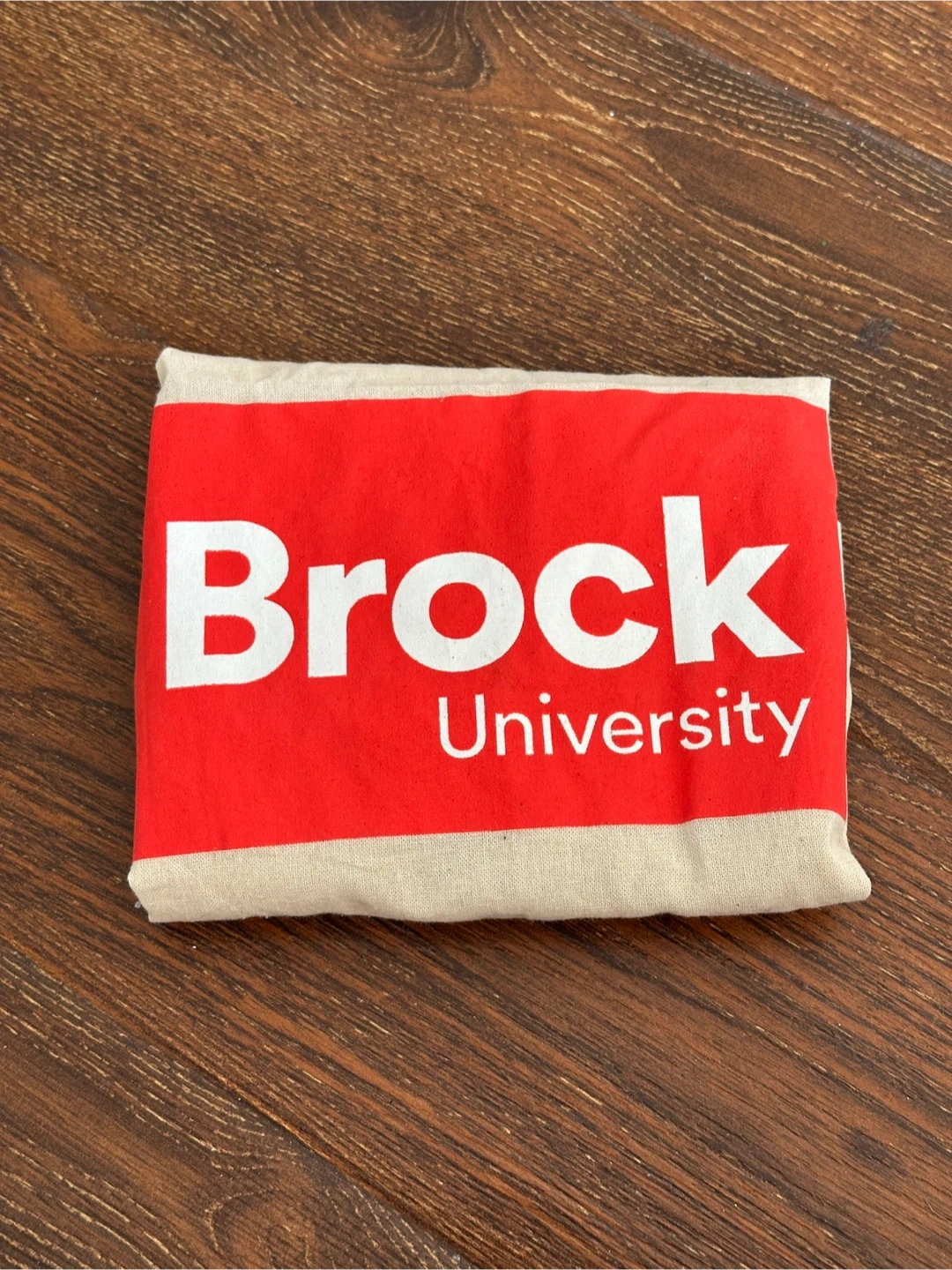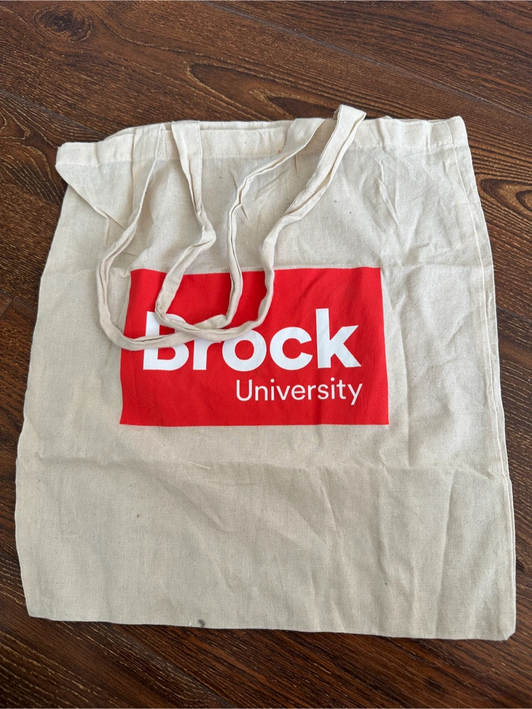 A canvas tote bag featuring the Brock University logo. It's a reusable bag perfect for carrying books or groceries. Made from durable canvas material.
