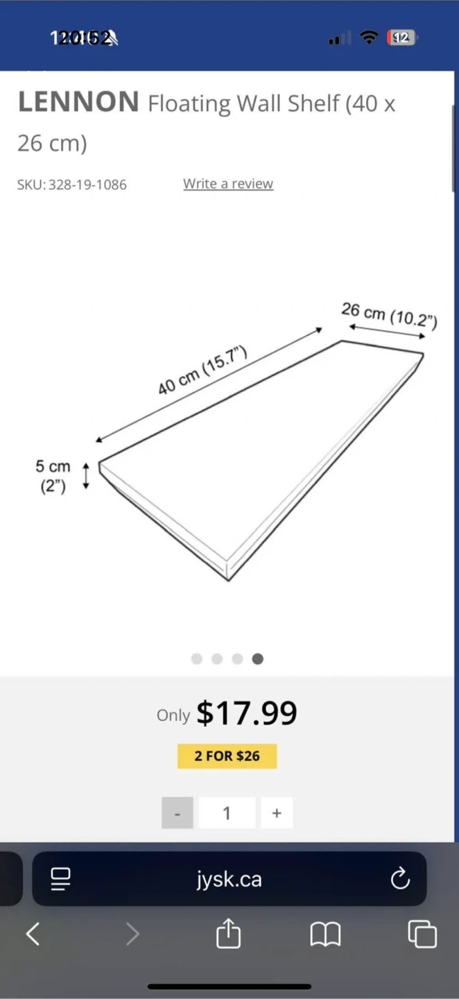 Selling 2 LENNON floating wall shelf. It's 40 cm wide and 26 cm deep. These shelves retail for $17.99 each on sale at JYSK. $10 each or both for $15