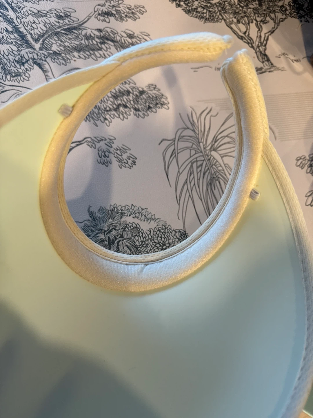Selling a light beige visor, perfect for sun protection! It's in great condition and ready to keep you shaded on sunny days
