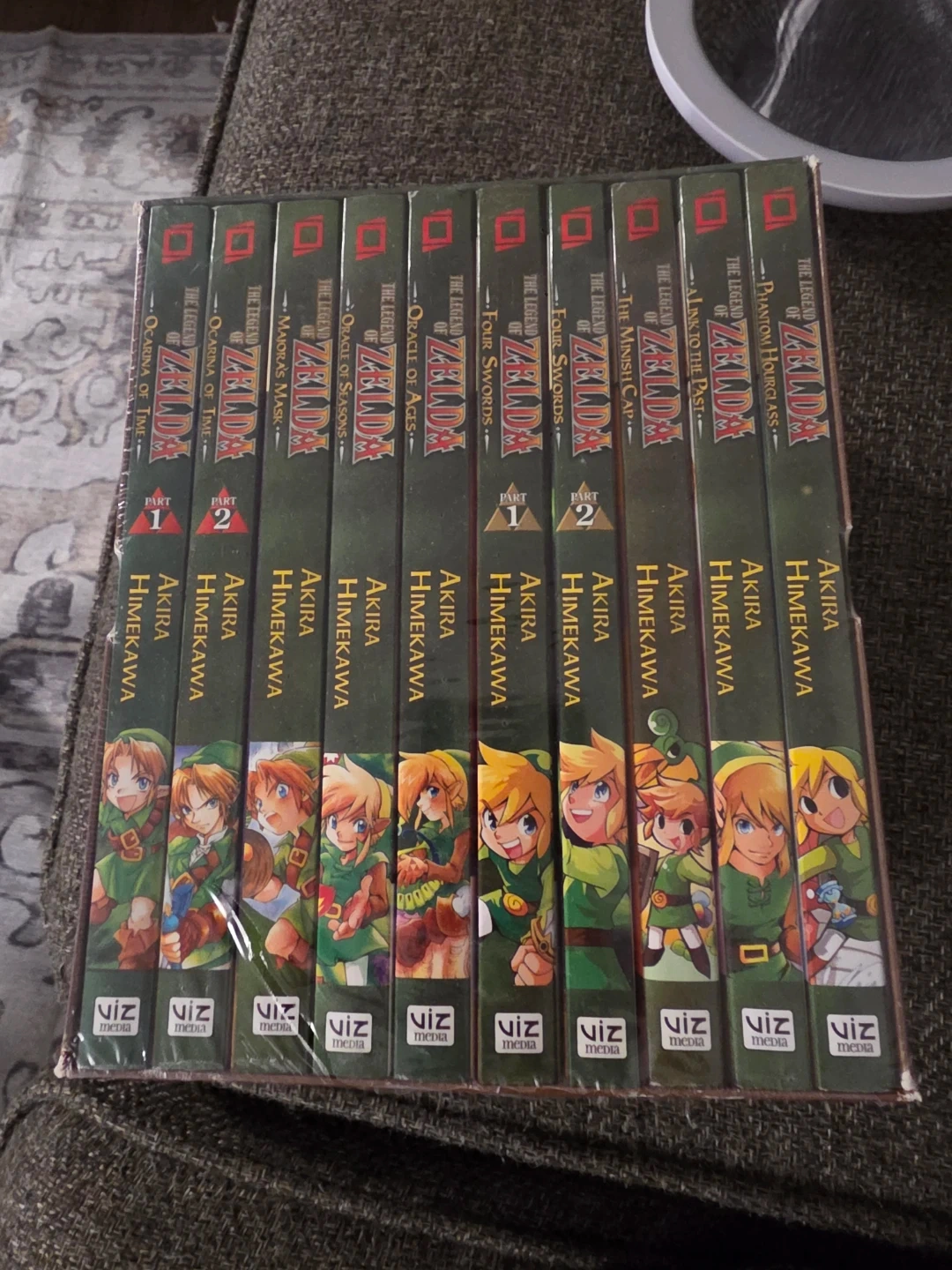Selling The Legend of Zelda Manga Box Set, which includes volumes 1-10! The box set is sealed in its original packaging, though there is a tear in the front of the plastic wrapping (pictured). This manga is written and illustrated by Akira Himekawa, and it also includes a collectible poster.