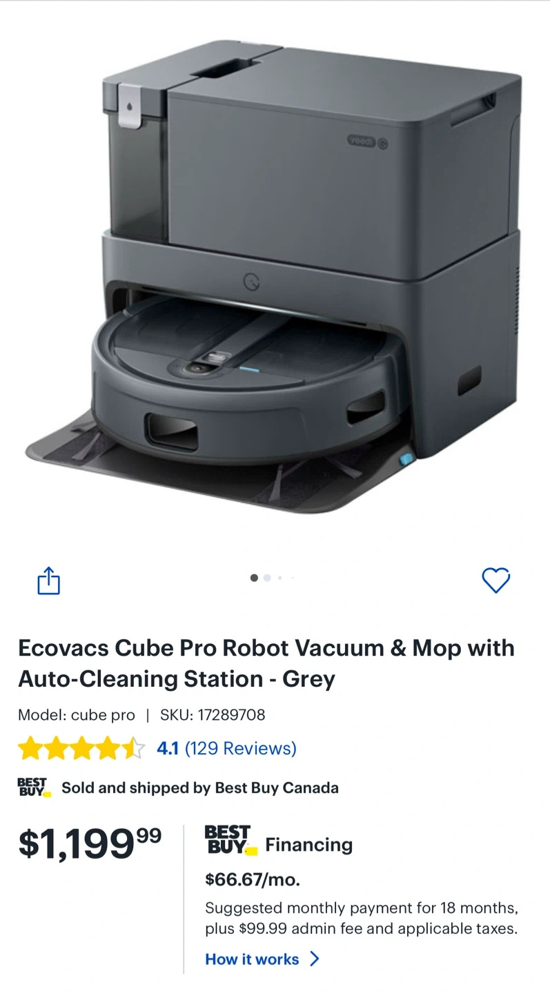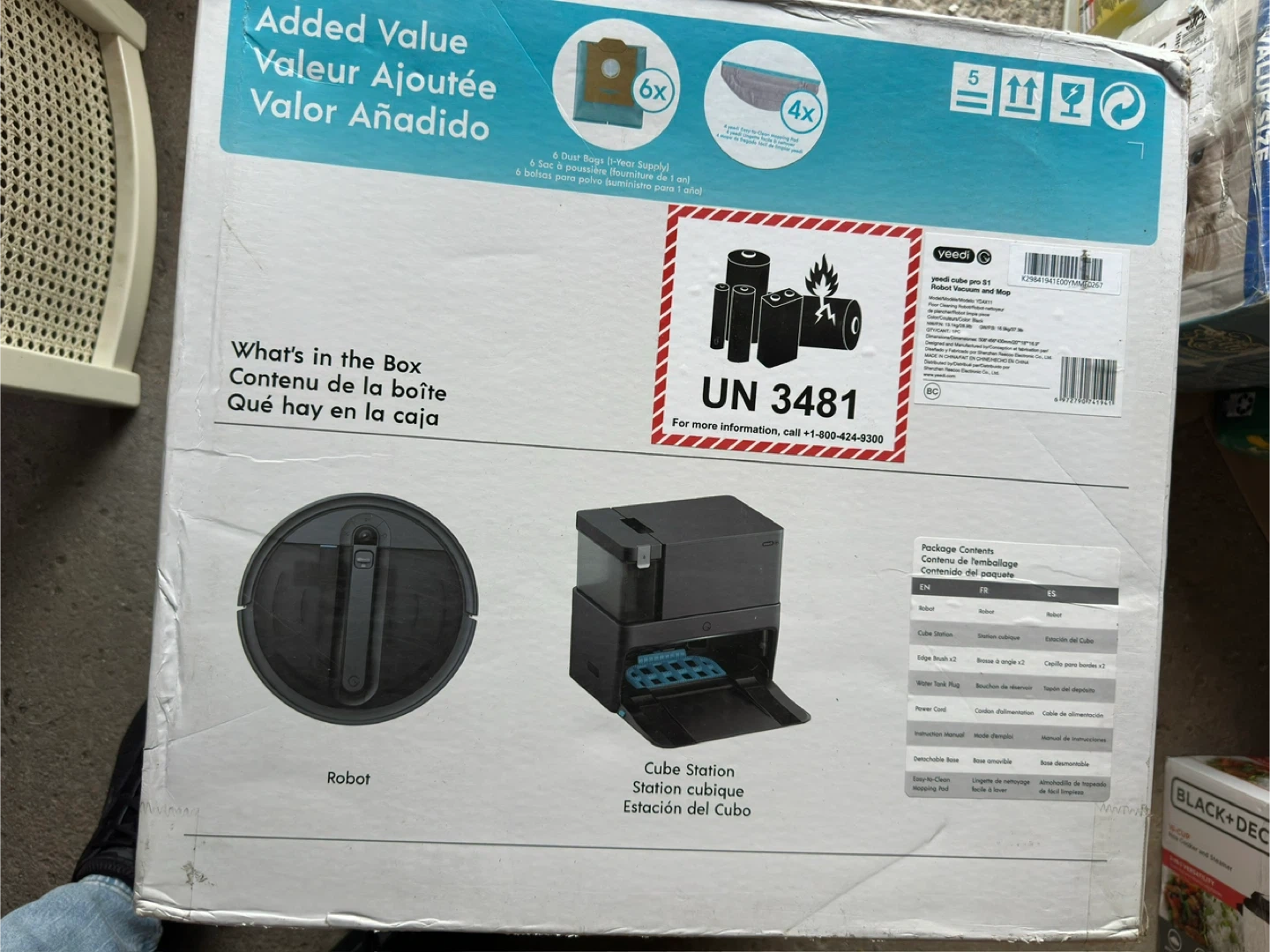 65Brand new (open box ) never used 70% discount on it Selling a Yeedi Cube Pro Robot Vacuum and Mop with Auto-Cleaning Station in grey! This handy device will keep your floors clean with minimal effort. It comes with the box and all original components. Originally sold for $1,199.99 at Best Buy Canada