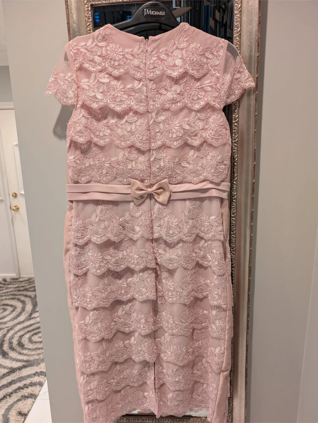 Jacques vert pink Lace Dress with Bow Accent