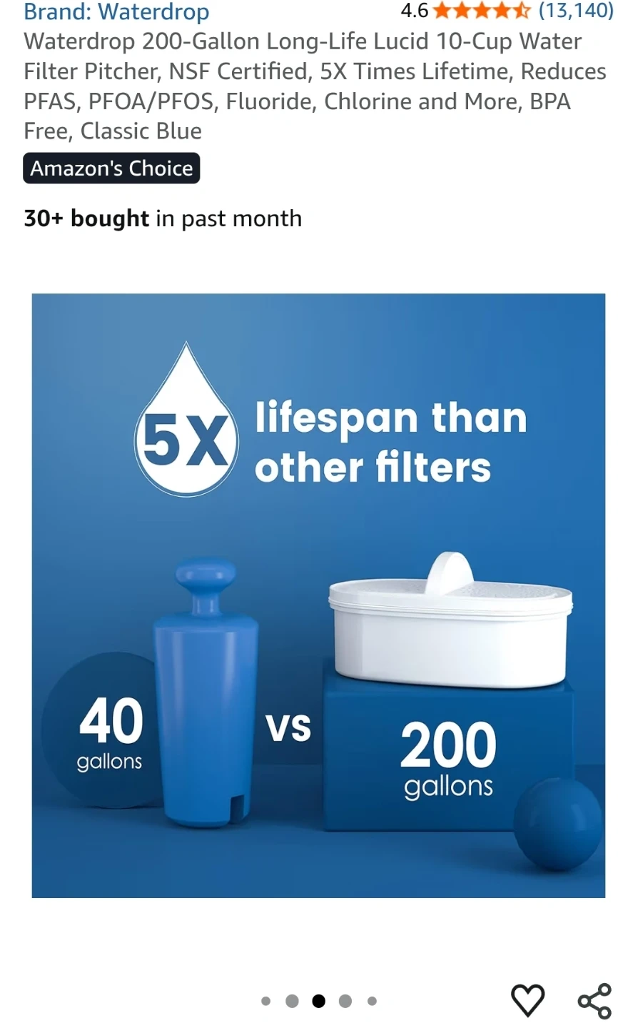 This Waterdrop Lucid pitcher filtration system comes in a 10 cup capacity.