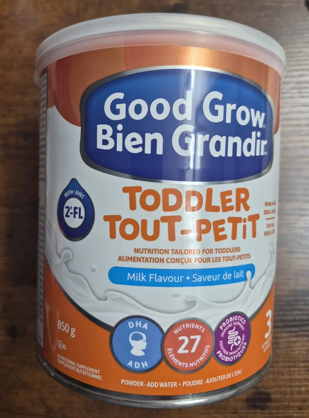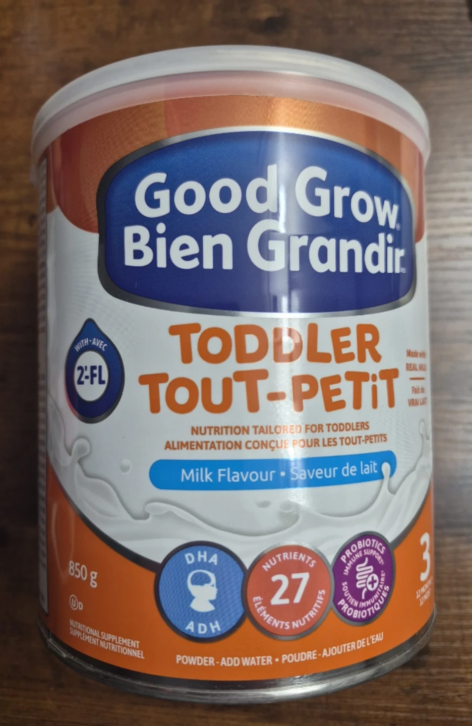 Good Grow Bien Grandir toddler formula in milk flavour. It's 850g and contains DHA and 27 nutrients. This nutrition supplement is suitable for toddlers.