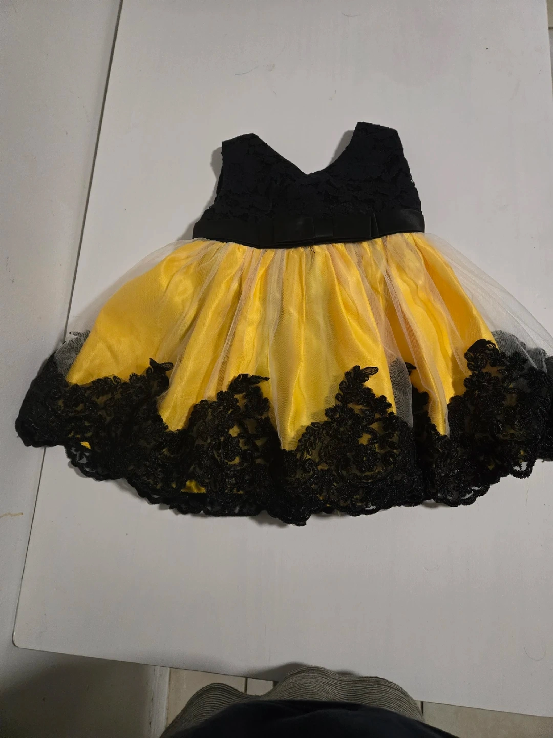 10A cute yellow and black dress with lace detailing, perfect for a special occasion or just looking adorable